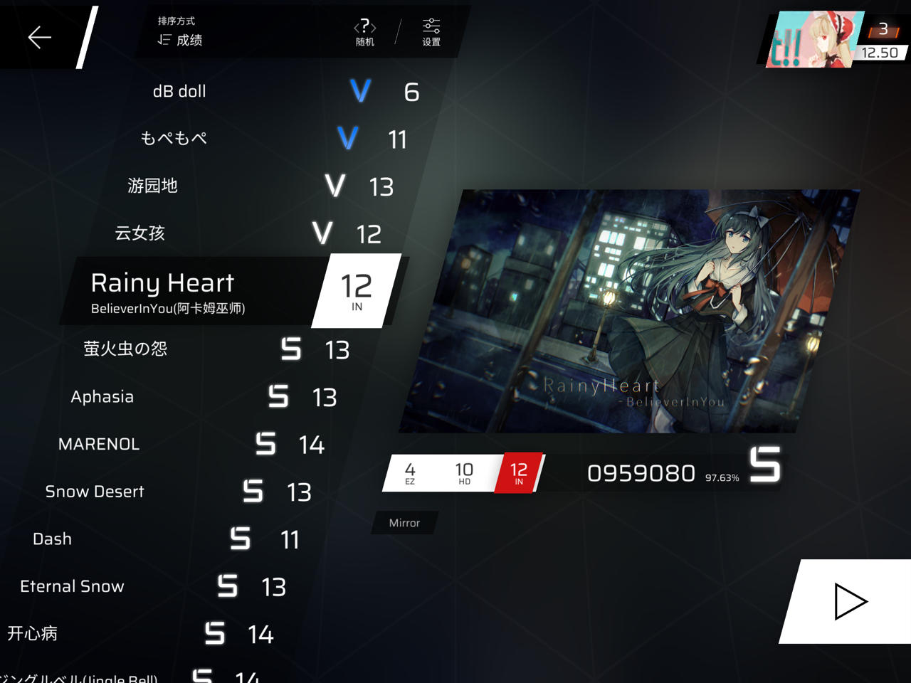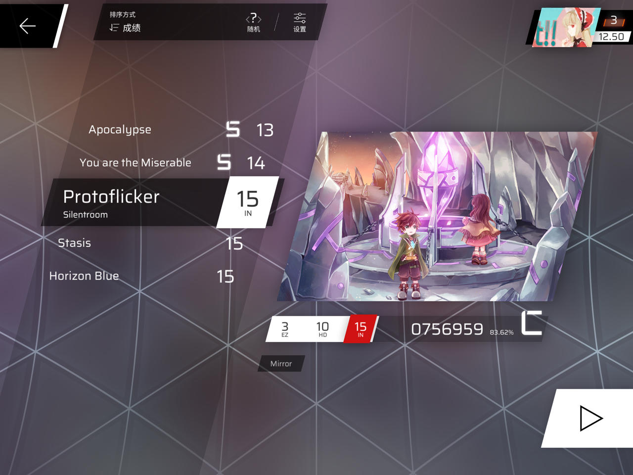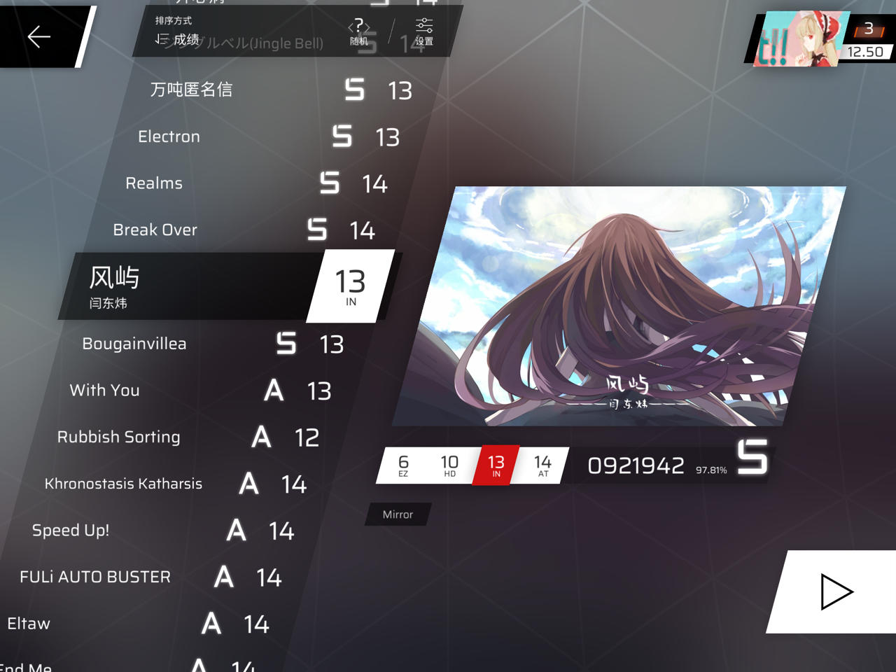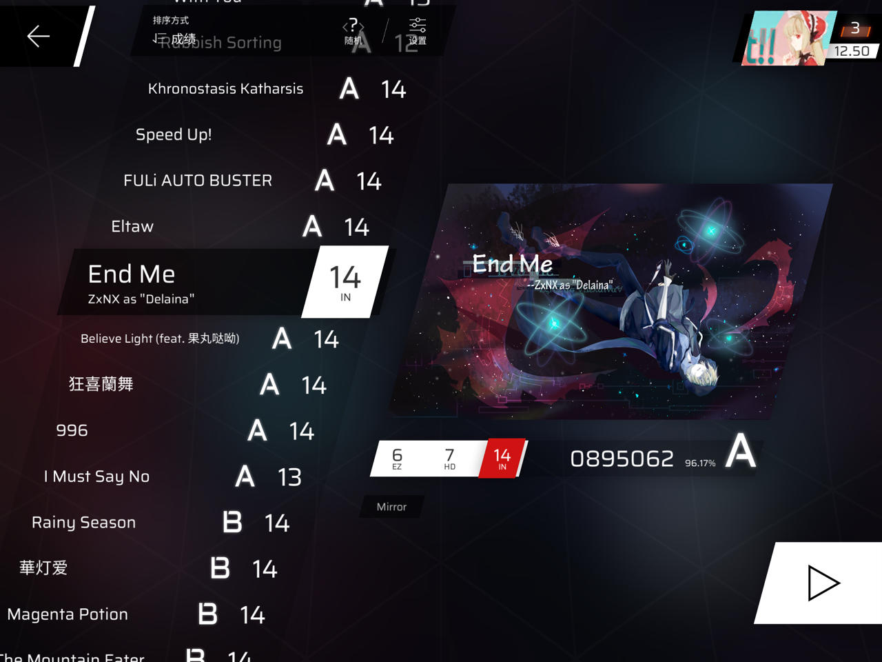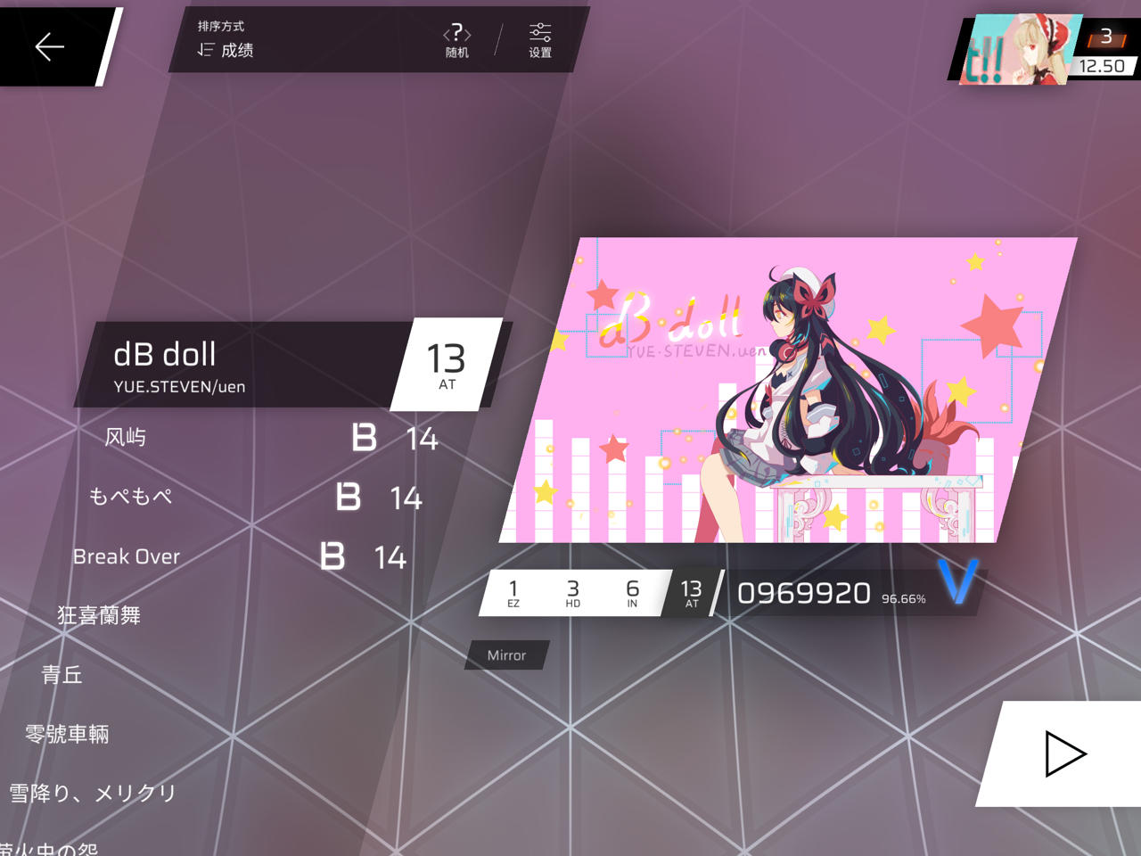 现在是第五章和第六章的ez一直在打,但是RKS始终上不去,越级打了一个上去了(但那个曲子打的不好),想问问米娜像现在一直打ez还有提高RKS的机会吗🥺🥺