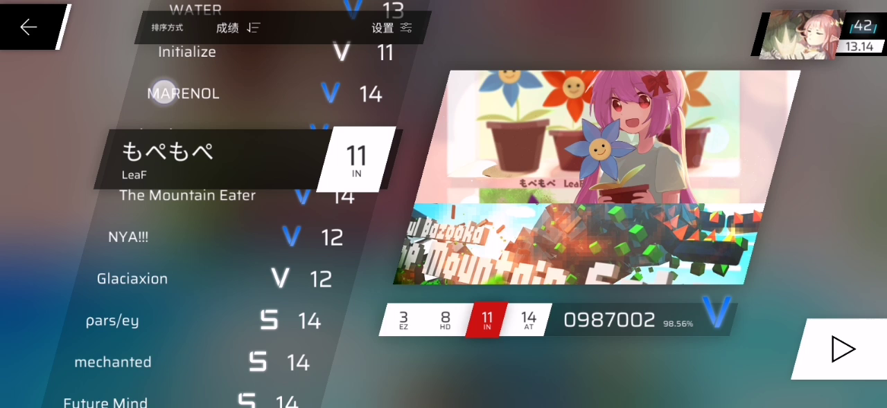 三个月前入坑屁股肉从B站上刷视频看到的,之前也从来没玩过音游,开始打的时候菜后来A了个12级的歌就又莱又爱玩,11级的时候只打14以上的,7级硬干一月个月A了15的尊师,现在总感觉到瓶颈了,求大佬指点一二。