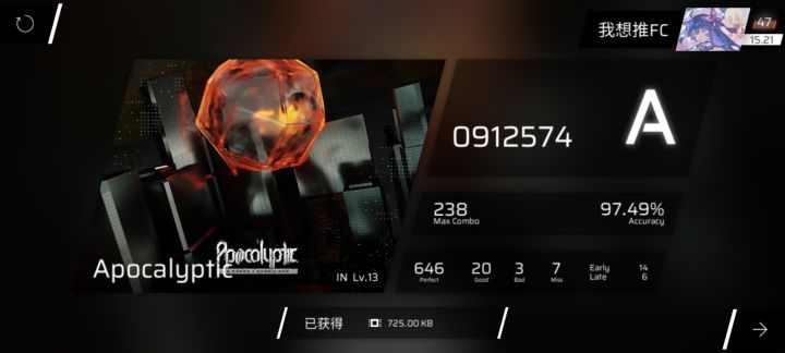 慢速段要我老命啊,三指有好几次能糊过去但是因为提前松了长条miss了(我IN13就剩下这最后两首没有FC了)