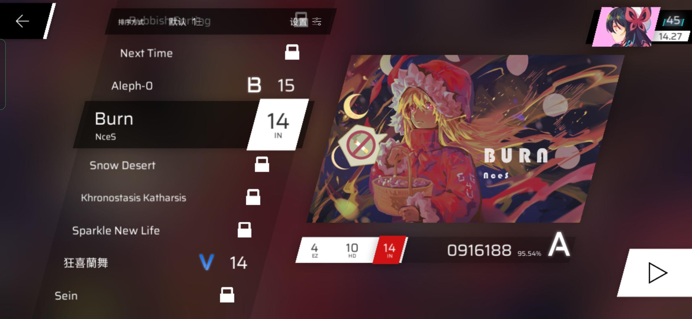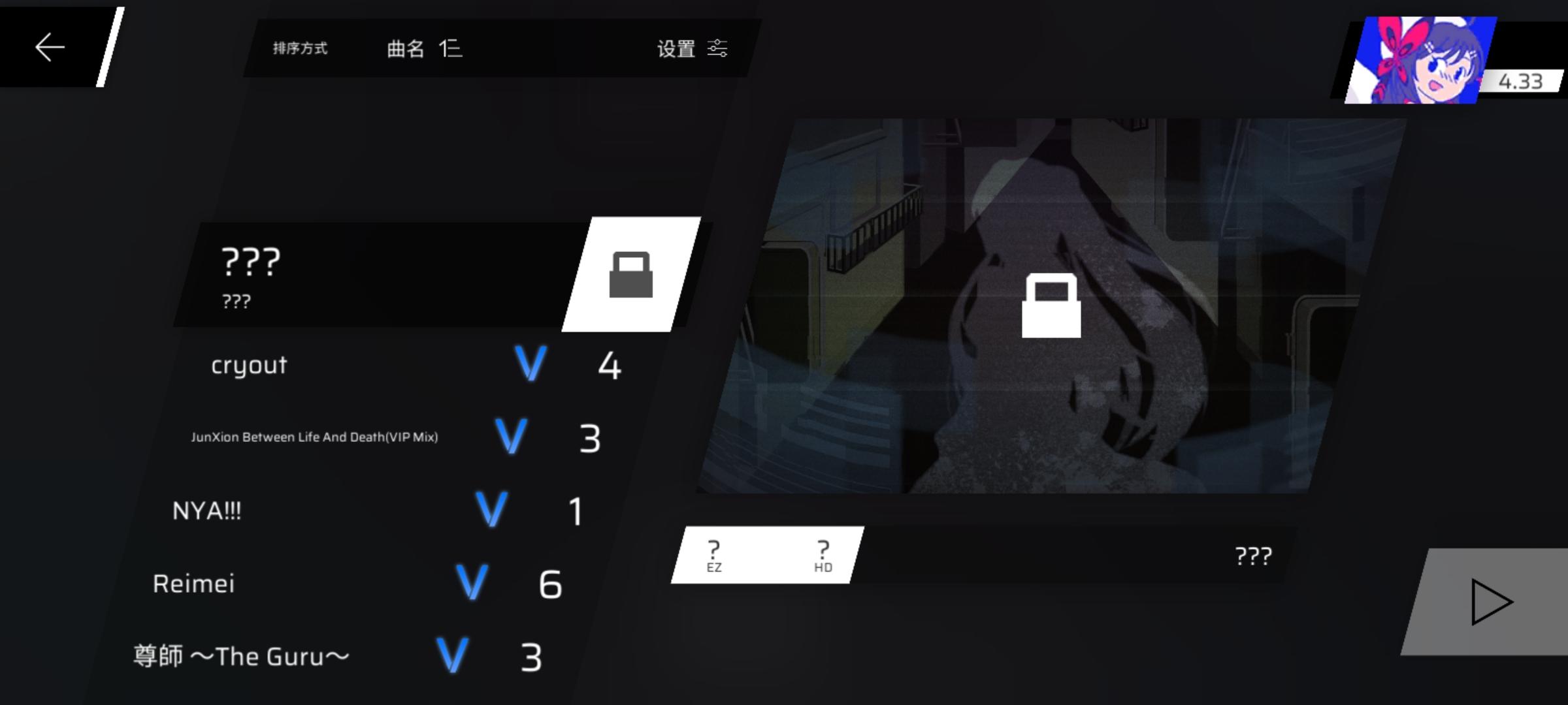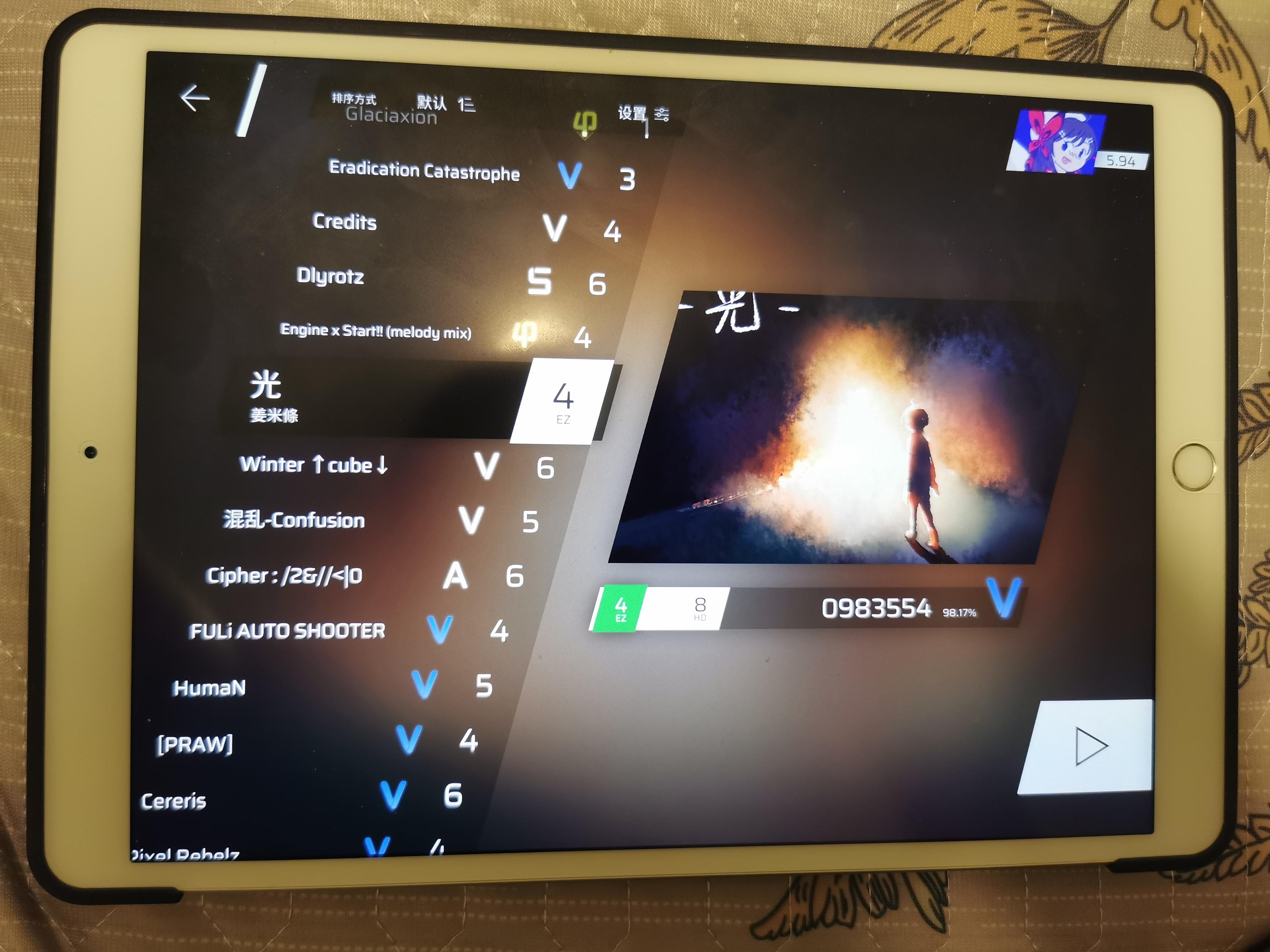 想问下大佬们,我是刚刚入坑两天,然后把章节都推了一遍,每首歌就打了一遍,然后是这么个样子,想问下接下来推荐打一些什么难度的歌曲诶,目的当然是一边打不反人类的谱一边听歌一边把那个rks涨上去,推完了章节就不知道干啥了