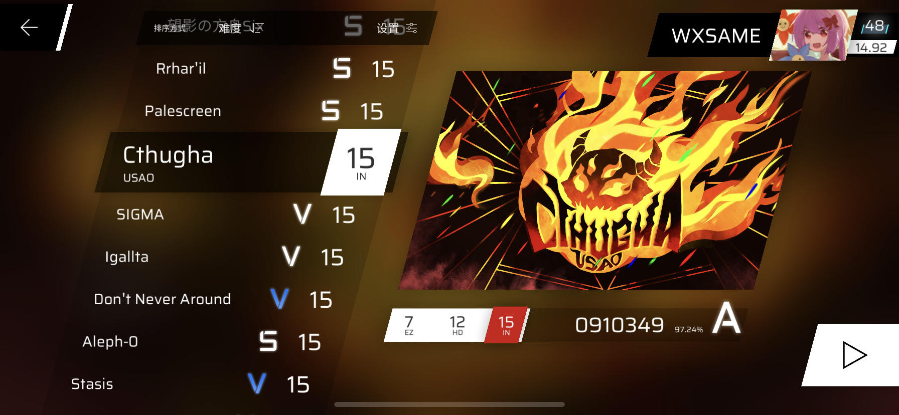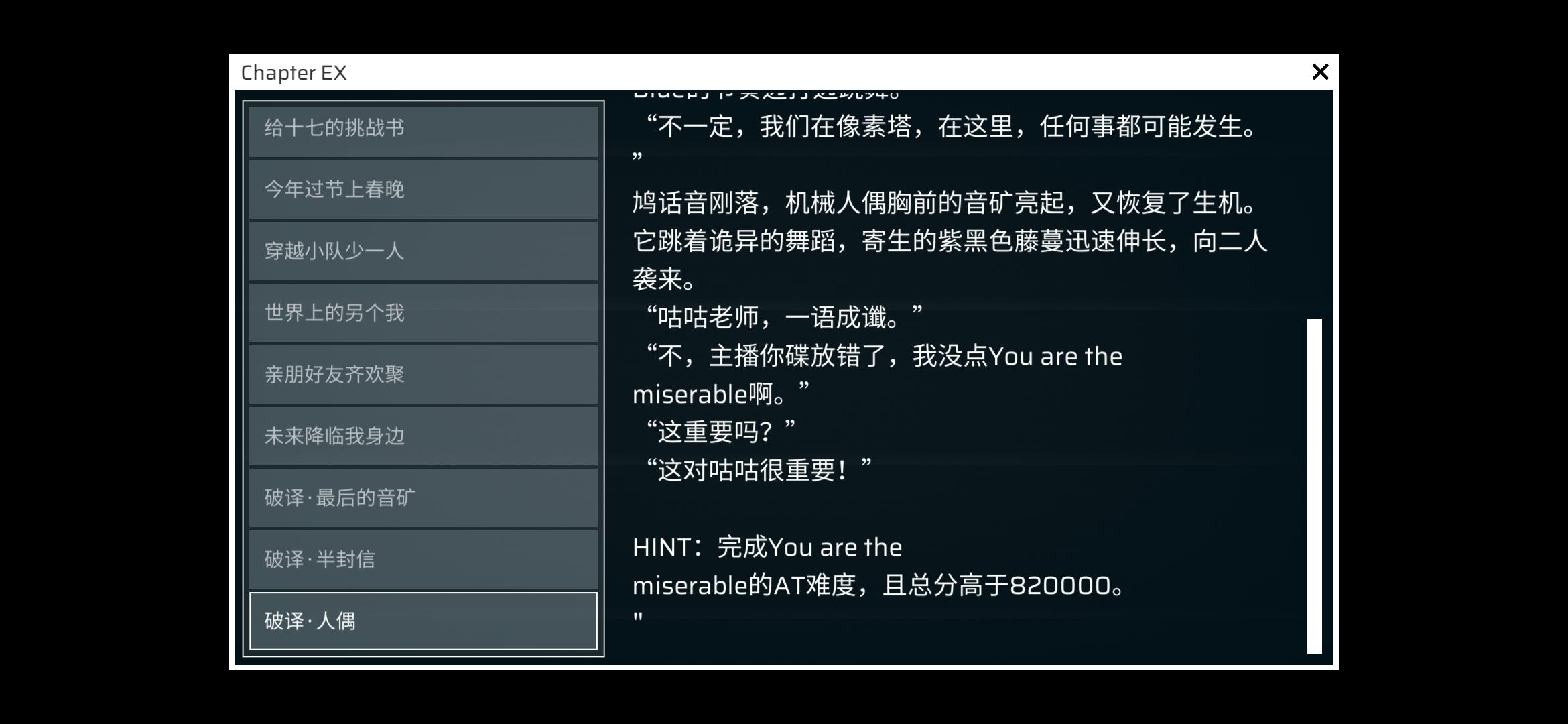 我想请问一下,在解锁隐藏曲Rrhar'il的时候Clock Paradox 这个曲子我没有达到满分,后面要怎么拿满分呢?因为一打就会出来好几首曲子,断了就没有分了。所以想问一下是需要出现的曲子都拿满分才能把这首歌的分打满吗?(拜托大佬求解🙏🏻)