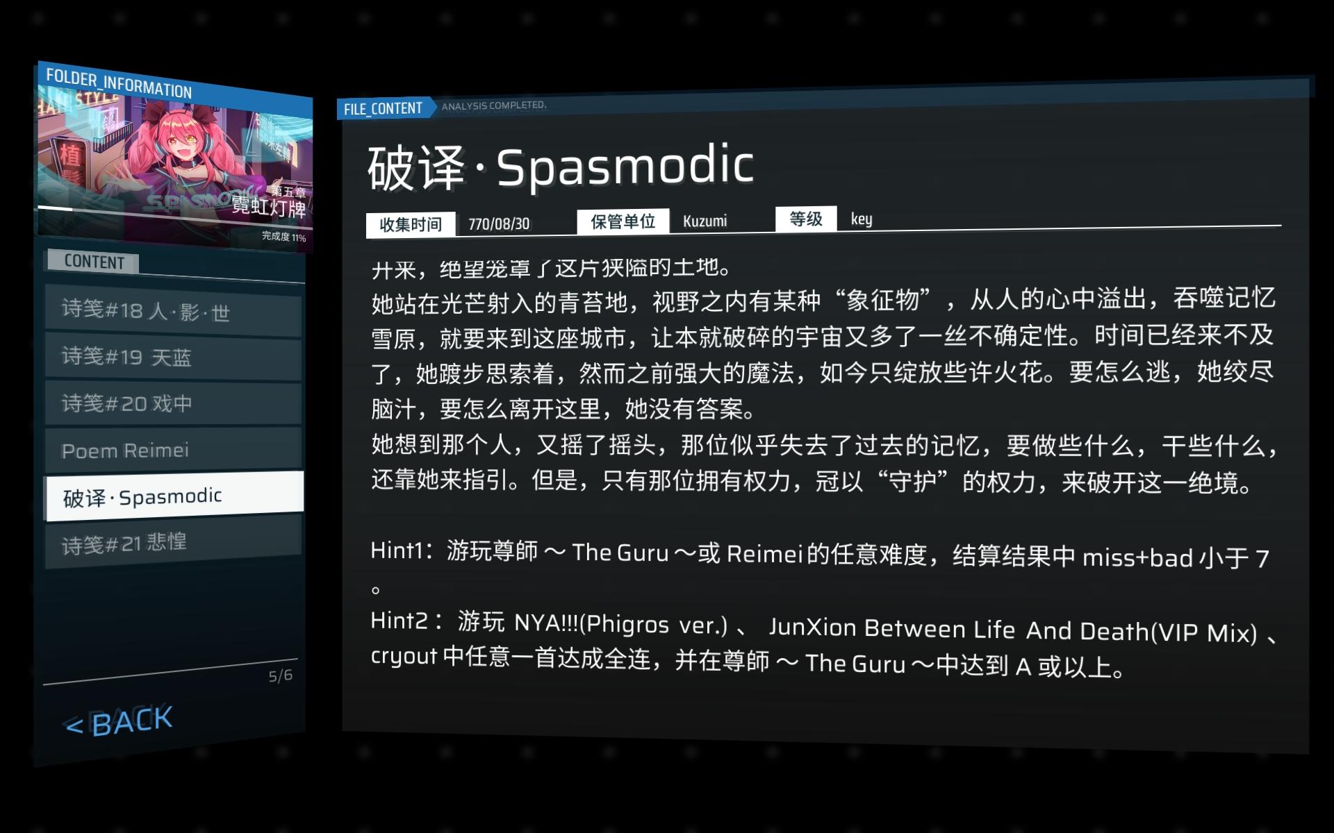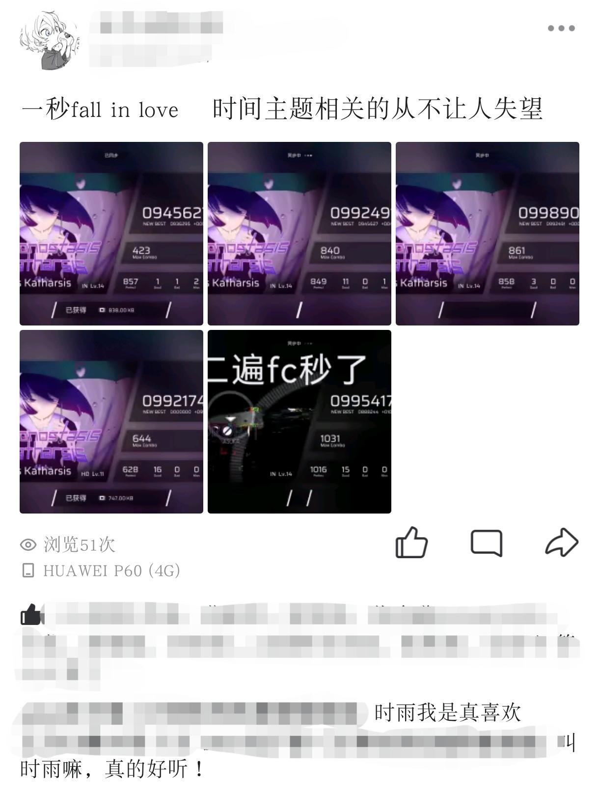比如说,Chapter7魔王曲可能会称之为(猫猫可爱捏)猫娘;chronostasis又称黑皇帝(我猜可能是因为曲绘,而且很难?)起因是解锁single里的khronostasis kathrasis觉得特别喜欢,截图分享在动态里——好朋友评论:时雨我很喜欢我:(知识+1)哦哦,这个叫时雨哇玩得时候还觉得英文白学了,查又查不到,有的翻译过来还怪怪的……#(loading