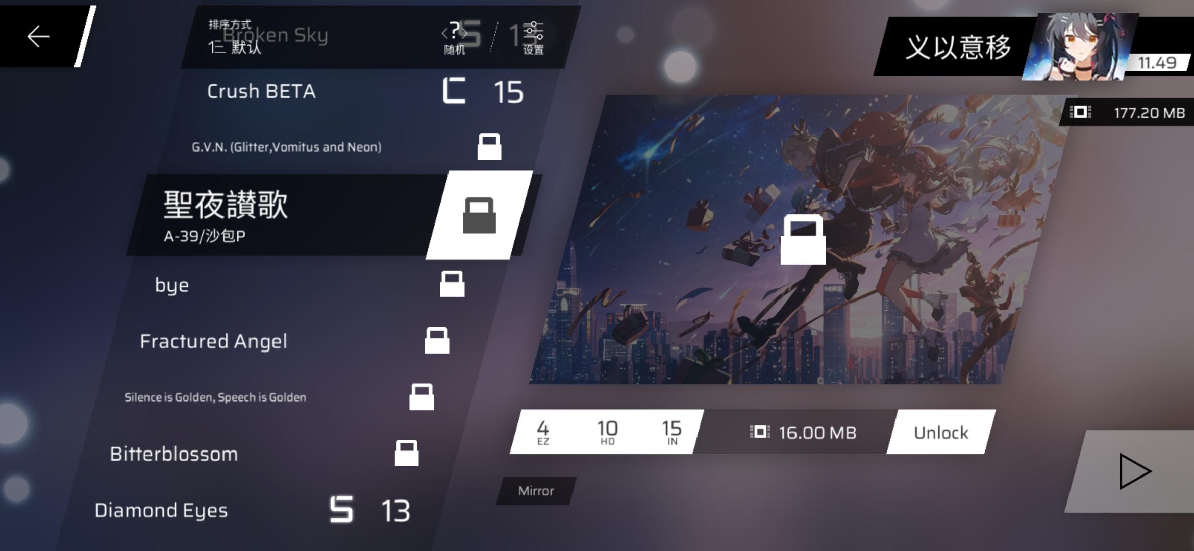 有一次我在账号统计中看到了IN难度,我不知道那个IN难度藏在哪里。它是怎么解锁的?一首谱子HD打到A了,还是不解锁。
