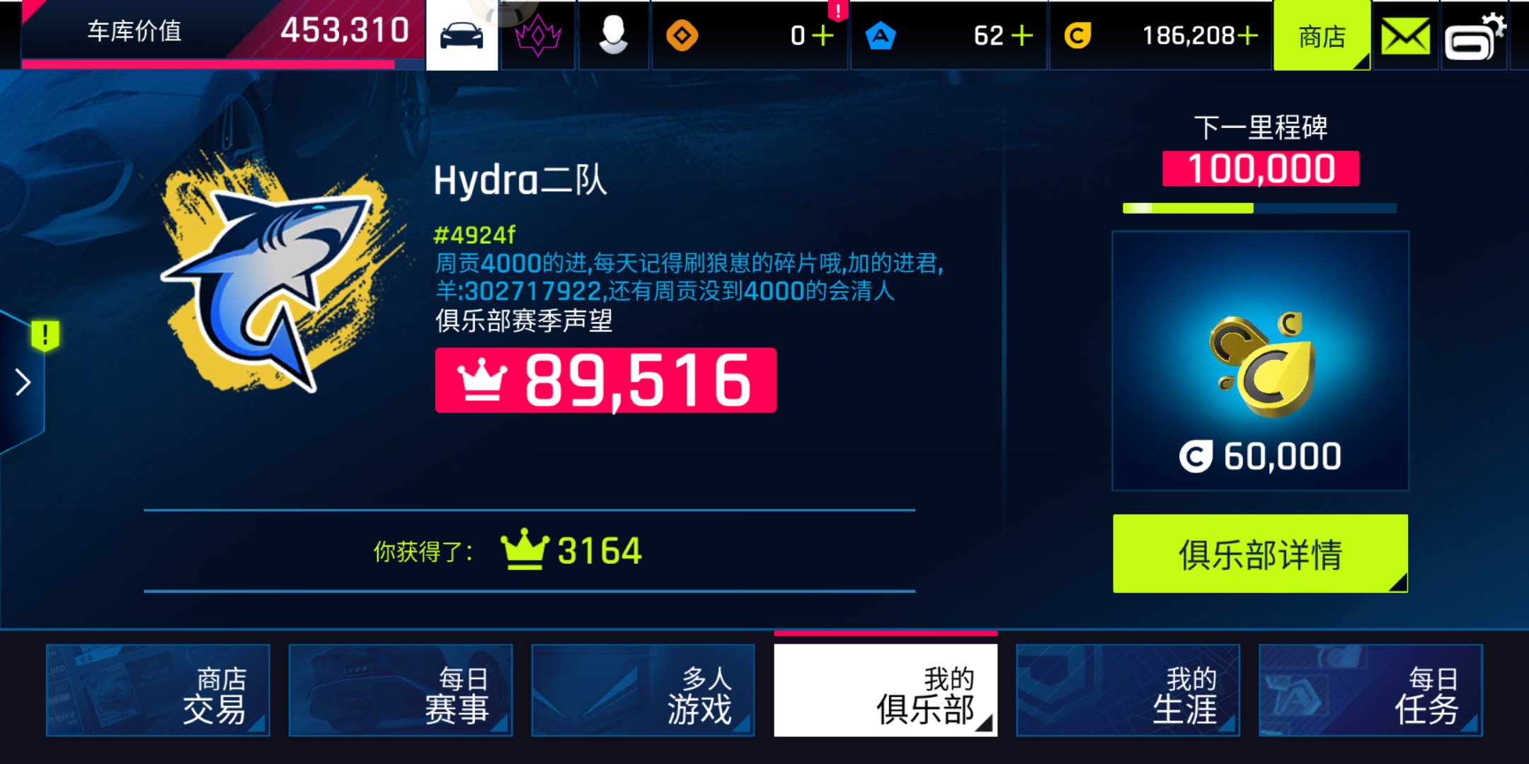 今天一天我俱乐部一直卡在3164了,然后开完比赛个人声望会增加但是俱乐部声望就没加过@秋名山小野