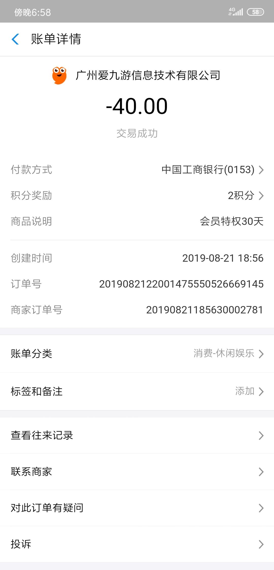 充了40买会员,没有到账