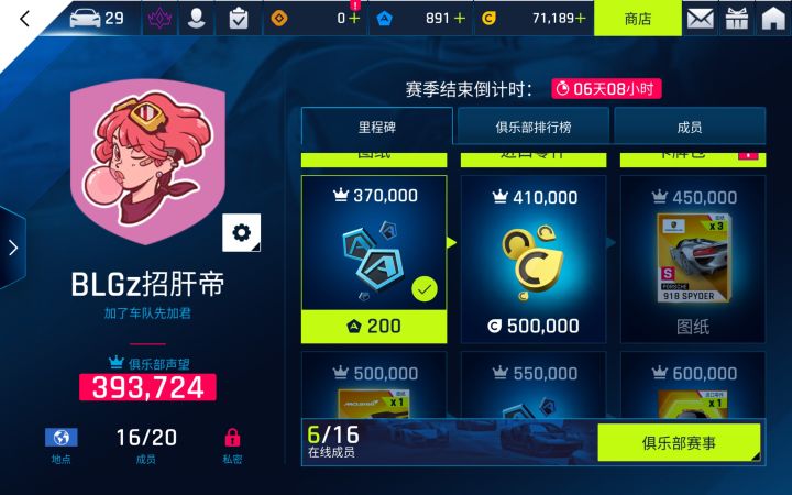 BLGz俱乐部招人。安卓全奖俱乐部,队长排名前百。要求日贡2000,能跑狼崽。有意者先加群。