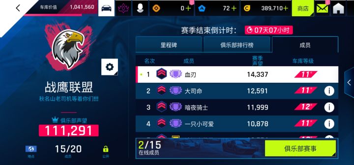 虽然是个新手,只有7级车库。但每天1000声望还是可以的。跪求一个拿奖励的俱乐部