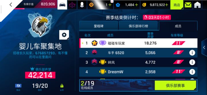 寻求俱乐部带走,声望39级,车库13级
