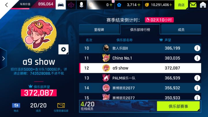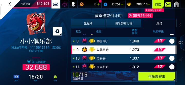 本俱乐部是开放的直接收明字即可加入每周日根据赛季声望晋级和清人