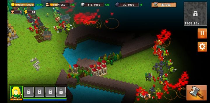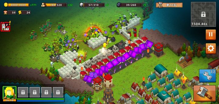 这个游戏题材挺好的,内容也比较丰富,但是还是有不足。1,建筑升级会失去自身的功能,资源建筑这样太拖了。2,哥布林进攻有时过于频繁,玩家来不及准备3,有时候一波未平一波又起,玩家来不及修复和准备,更有时几波一起,不让玩家活了吗?如果单纯为了增强节奏,可以增加快进功能。4,英雄技能呢?5,玩家的各项防御是有上限的,但是哥布林越来越多,能不能不要让咱家无限下去最后只能是输,那玩家多半玩不下去,