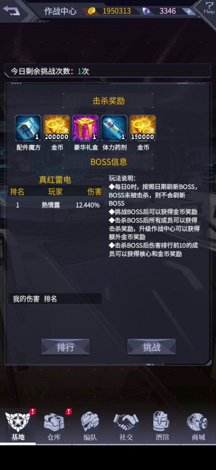 吃我一次机会 第一次打了15%左右 出来发现有人可能和我差不多时间打的 我的伤害没记 第二次正常16%bug游戏 体验什么的 真让人无语
