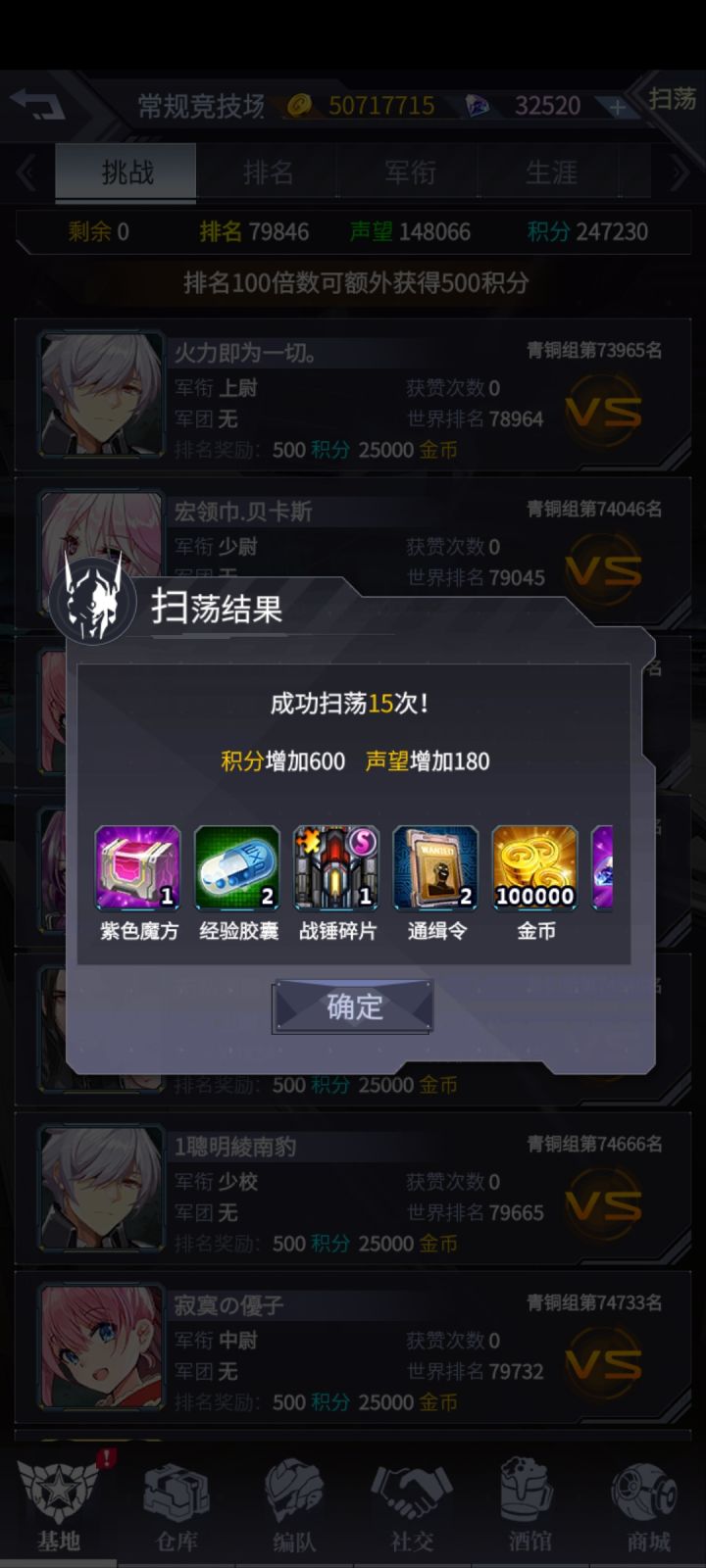 为什么竞技场扫荡积分只有600呀?不应该是750吗?😂难道扫荡还会打输的?花20钻扫荡还要扣这点积分,真的是扣扣搜搜
