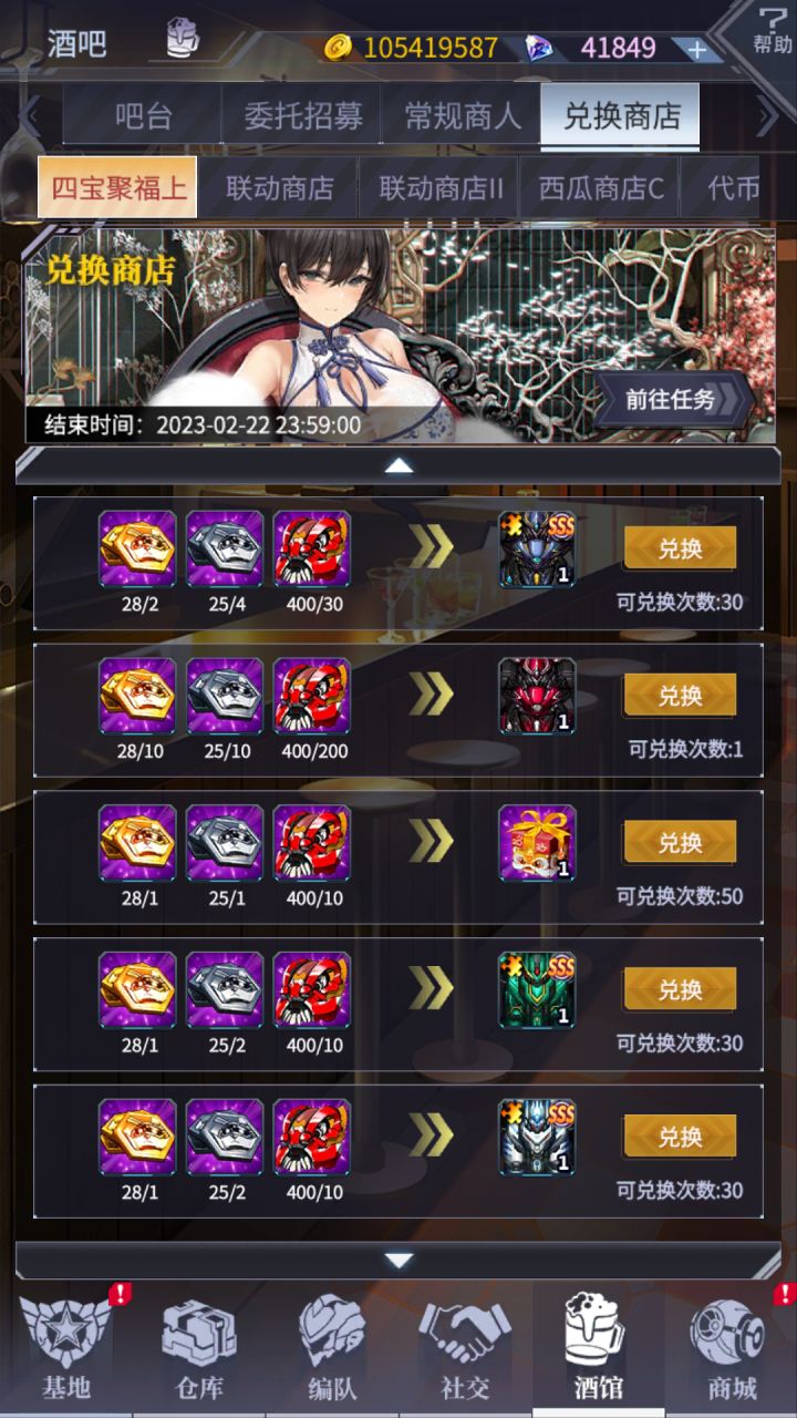 首先我买一个自抽号,给大家展示如何养成。一*1、首先是酒馆,从凌晨开始12点刷新当日第一次技师灌酒依次到3点刷,9点刷,12点,3点,6点,9点如此循环一天,期间机师桌子上会出现佣兵票和通缉令还有黑猫(黑猫能提高给暴击礼物机师出现的概率,不过概率感人)。一线机师请用钻石加紫色礼物喂养,便于速度到60好感带回家。2、委托招募,联动的时候再抽联动机师,有些活动会送邀请函,这个时候就能用在委托招募了