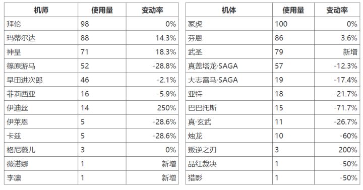 简单来说就是拜伦觉醒还是很强的,很明显的一个点就是带动了巴巴托斯这个机体。当然,觉醒拜伦可以开的机子也比较广。其实最近的觉醒机师都挺不错,新机强度也不会太超标吧,不是那种碾压式的。接下来等春节的机子了。(发完了,谁说没有周报的,粗来挨打)
