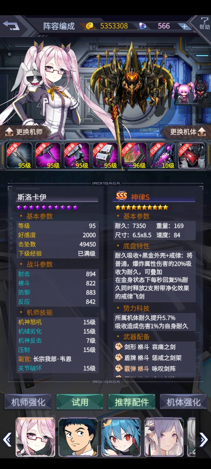 挑战49过了,宠物提尔锋,酸流装甲片很有用,降低了百分之30多的格斗伤害,加斯娜的回血也很给力,加上紫吸,终于过了