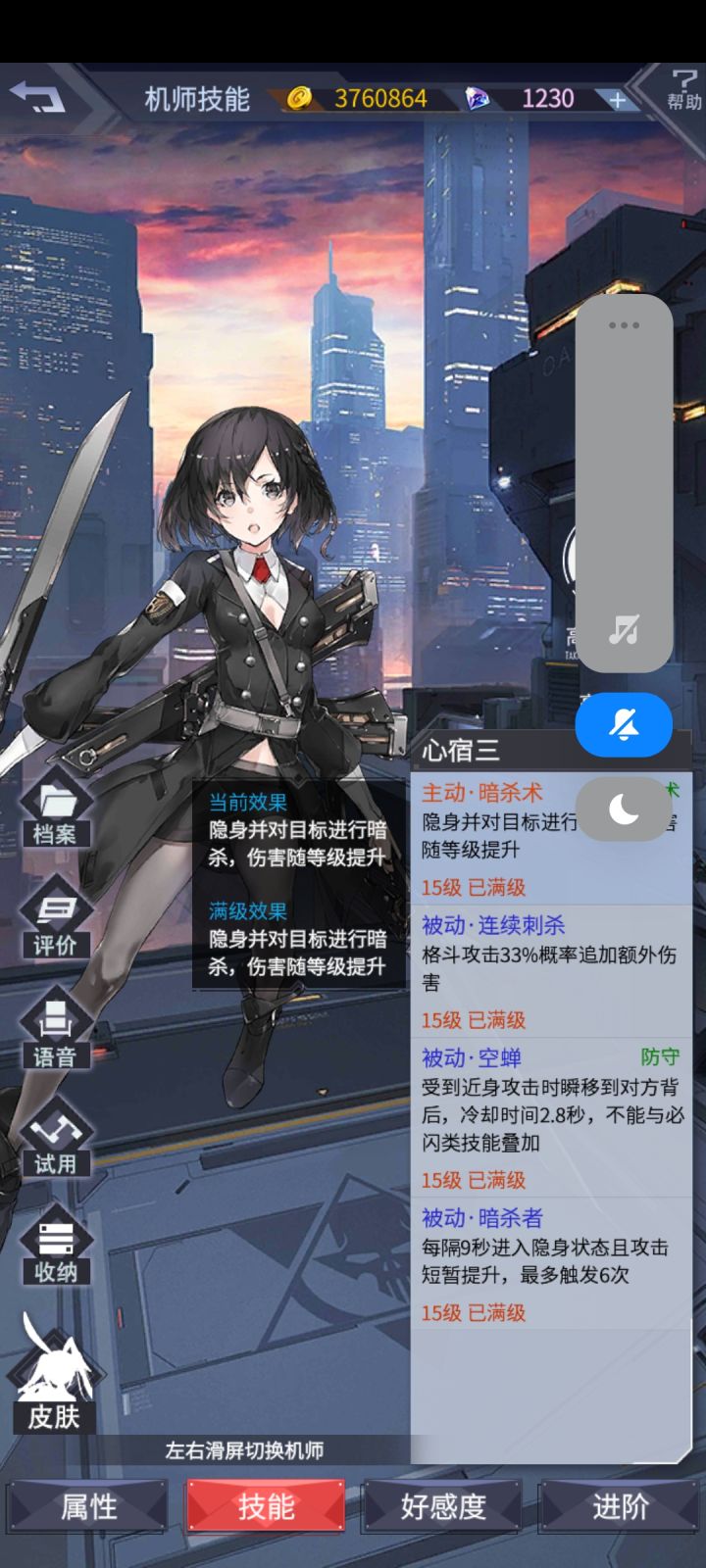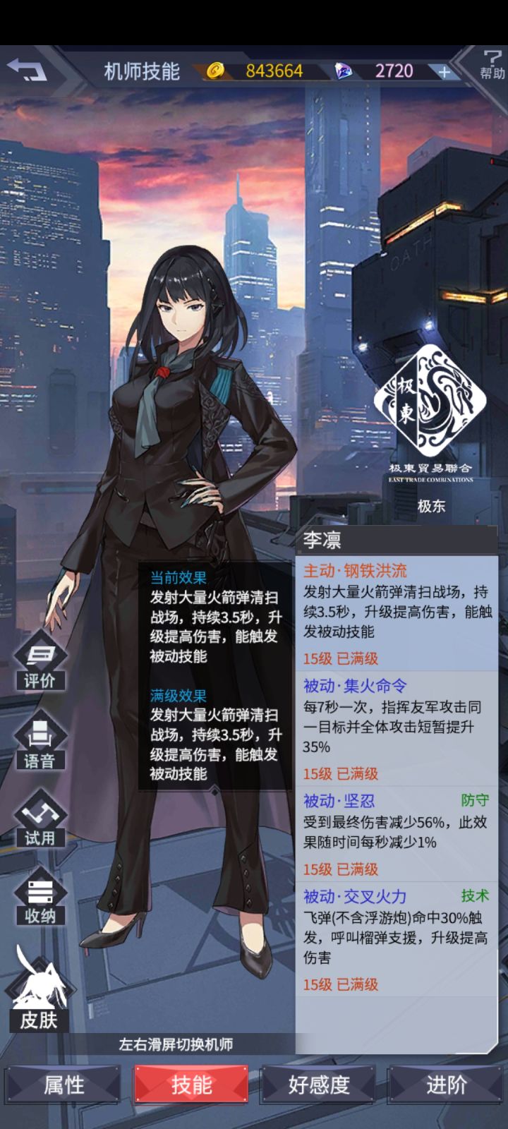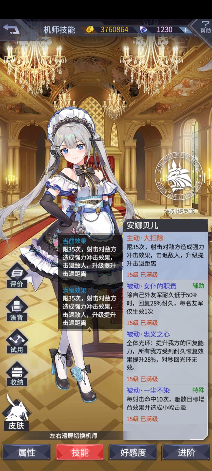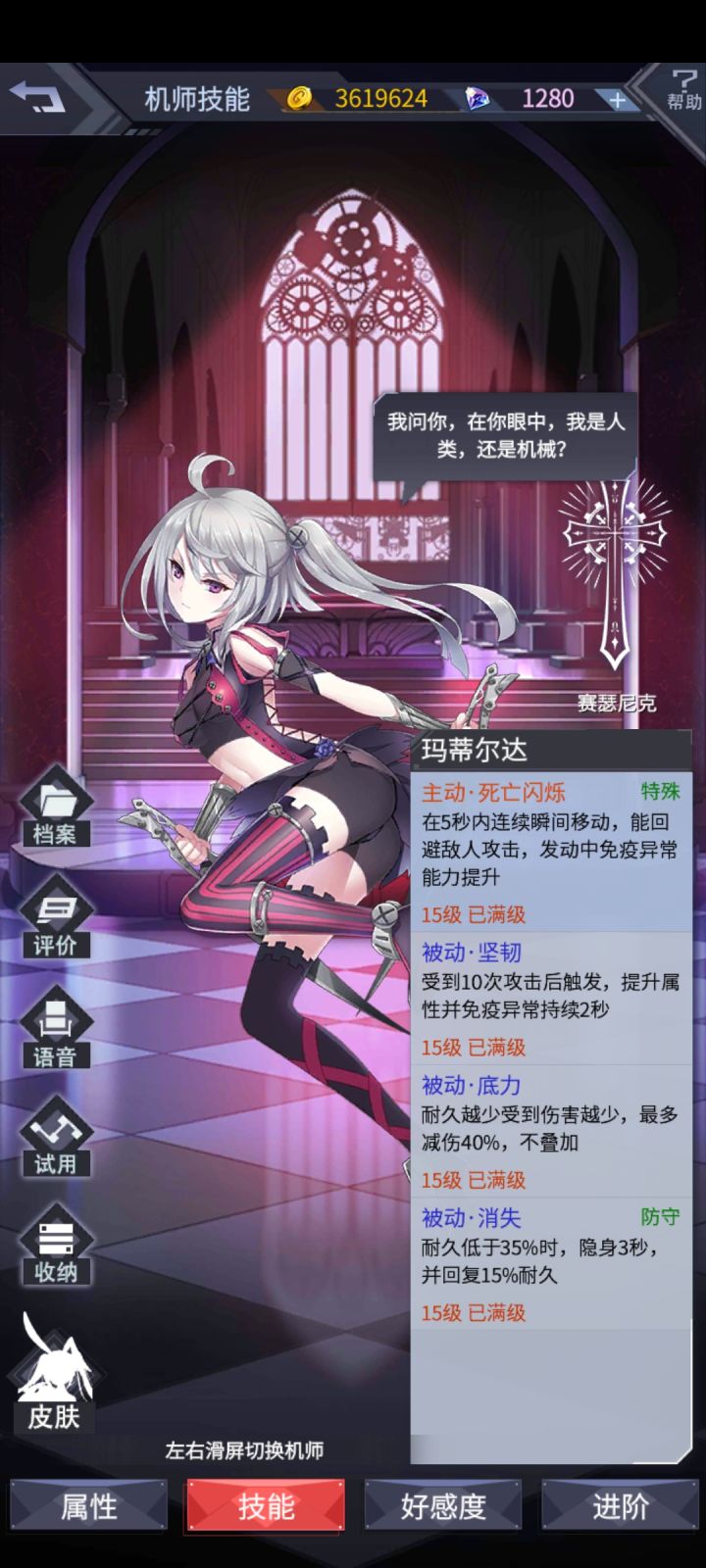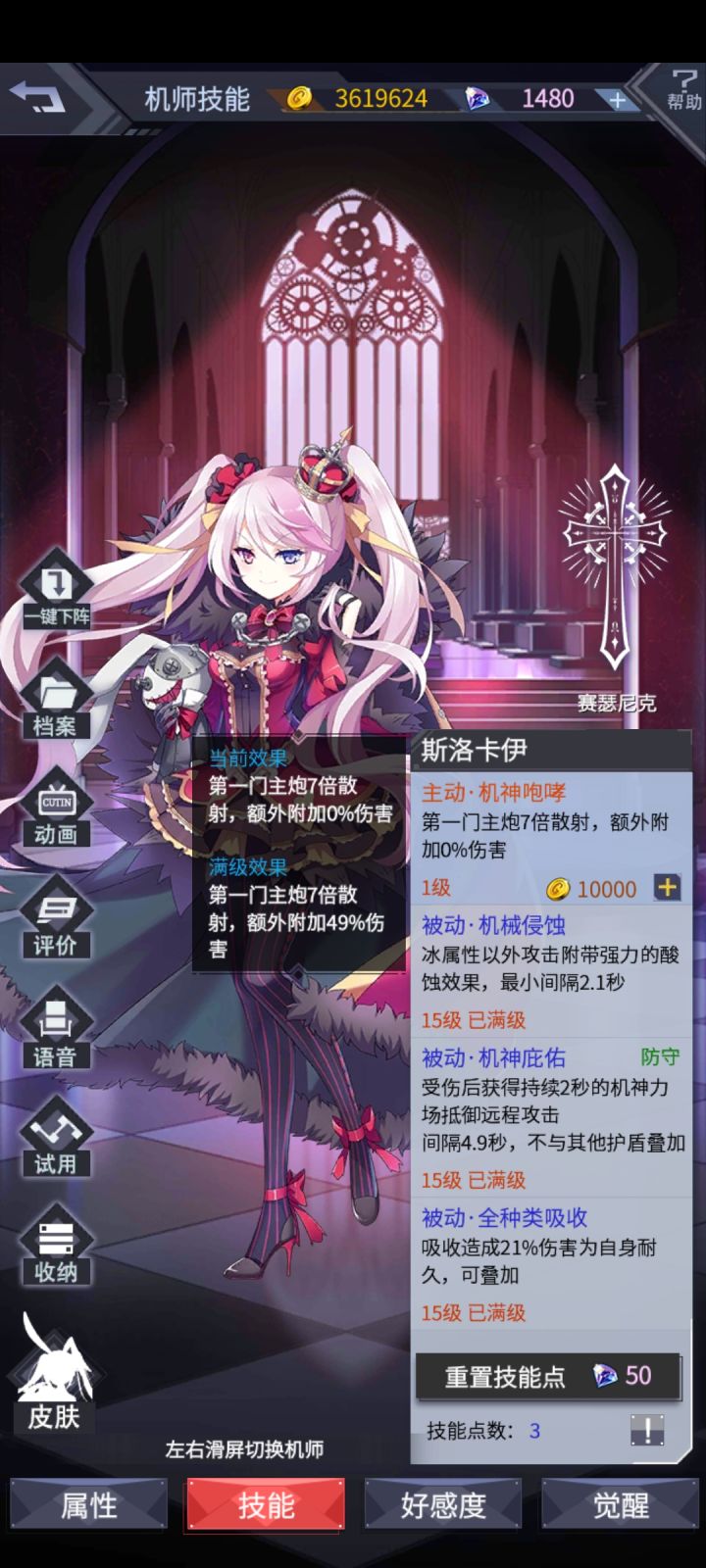 大家好,这里是阿晴,老规矩,最后两个图是我自己的号,我不会自己压右骗你们压左,有福同享有难同当。看一下机师先也顺便对比一下灵珠,首先左侧的机师,开战左侧灵珠就有百分之五十六的终伤减免,随着时间每秒降低百分之一。并且每七秒短暂提升全体百分之35的攻击和集火,注意是集火群殴。右侧灵珠的机师乱斗竞技场还有发展空间,她这技能你们自己看吧,都不用分析了,一个字就是废再说左侧的琴减伤可能和塔维尔的减伤底
