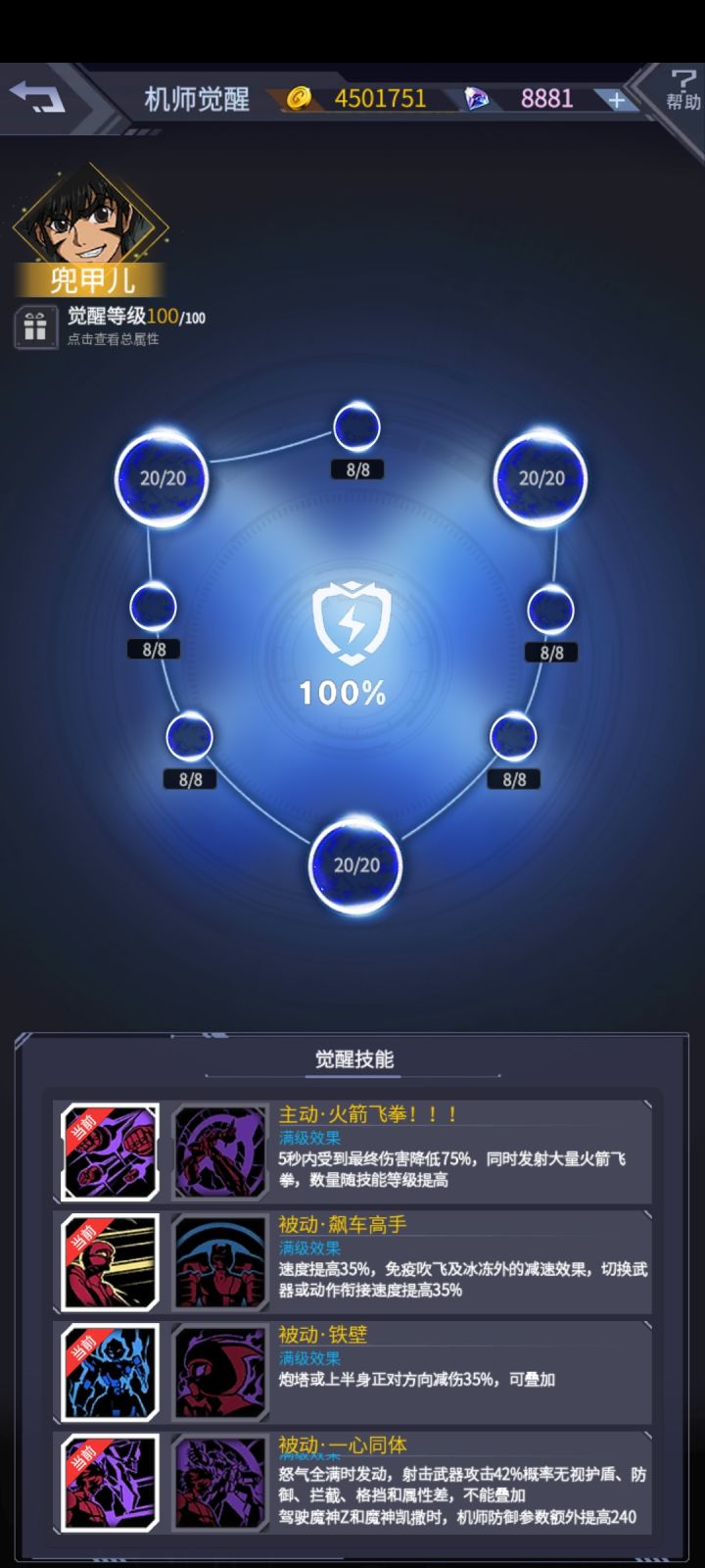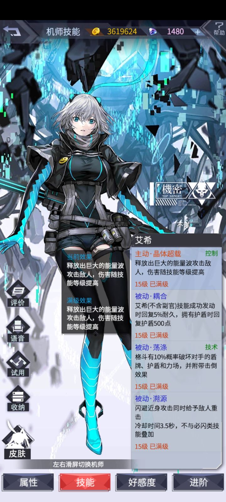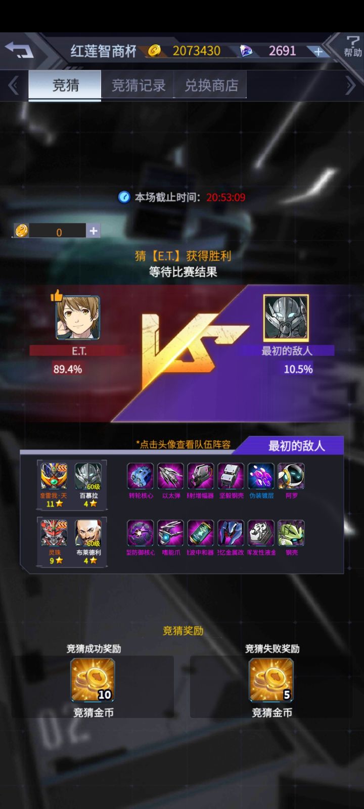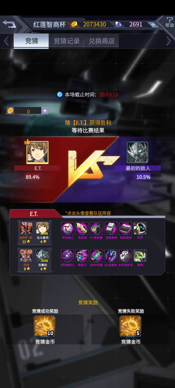 大家好,我是阿晴,首先图一是我主页截图,可以证明是我自己的号,非网图,我不会自己压左让你们压右坑人的,放心,有福同享,有难同当。图二图三是双方阵容,这要是弧光军团,肯定直接跟风压zero了,但是阿晴我爱我却很敏锐的察觉到了,阴谋的味道。首先双方机师都是60级,说明都是未觉醒,未觉醒的兜甲儿技能在图四,以太弹的具体详情在图五,也就是说,本局以太弹的唯一作用就是增伤,破防这一块因为以太弹数据必定<