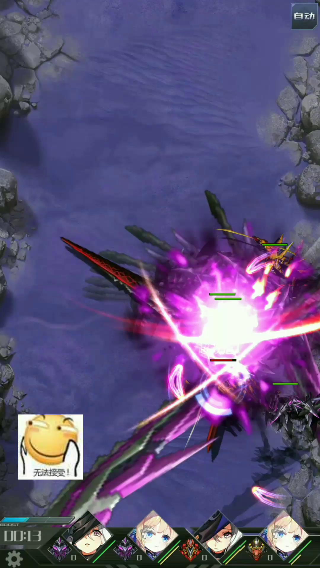 基本没见过比我更穷比的阵容。主c教皇,集火,能开两套大出来基本秒了百慕拉顺路刮伤其他几个,之后谁血集火谁,迪妮莎的大也很重要基本全队唯一的团控了。复仇意思就是有几台机体就是用来卖的,六星志雷马就是个弟弟,开局挨打送死的。之后就是对光束立场和绿色反光镀层了。纯手操78局能过一次,除了鬼皇基本都可以换,咸鱼们配置肯定比我强,我基本算志雷马第三波入坑的,肝度有限。鬼剑教皇虽然平时没啥用傻乎乎的开大后退,