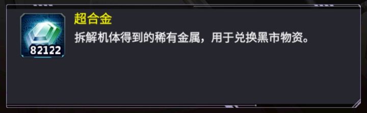 写这个完全是一条咸了一年半的臭鱼没事做来给新入坑的小咸鱼们一个大概的资源向科普和理解。希望大家别像我以前一样碰得满鼻子灰。一、入坑时期。这个不用说绝对是这两个弟弟,我***了。我记得我入坑的时候还因为缺这两个资源,又不懂就去买商城里面那个1000钻的礼包。现在想起来真想打自己一巴掌。获取方式:超合金拆机体来得最快了(不用的机体,活动机体等)。原能核心每次黑市刷新你都可以用2:1的兑换率在