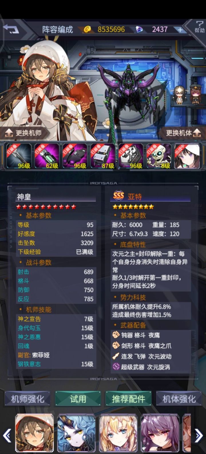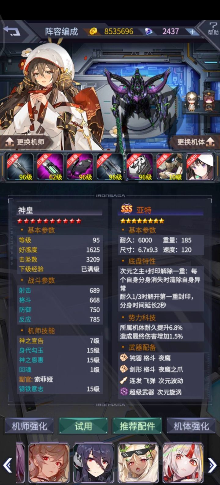 刚玩一天的萌新,想问一下大佬们,机师与机甲怎么搭配?
