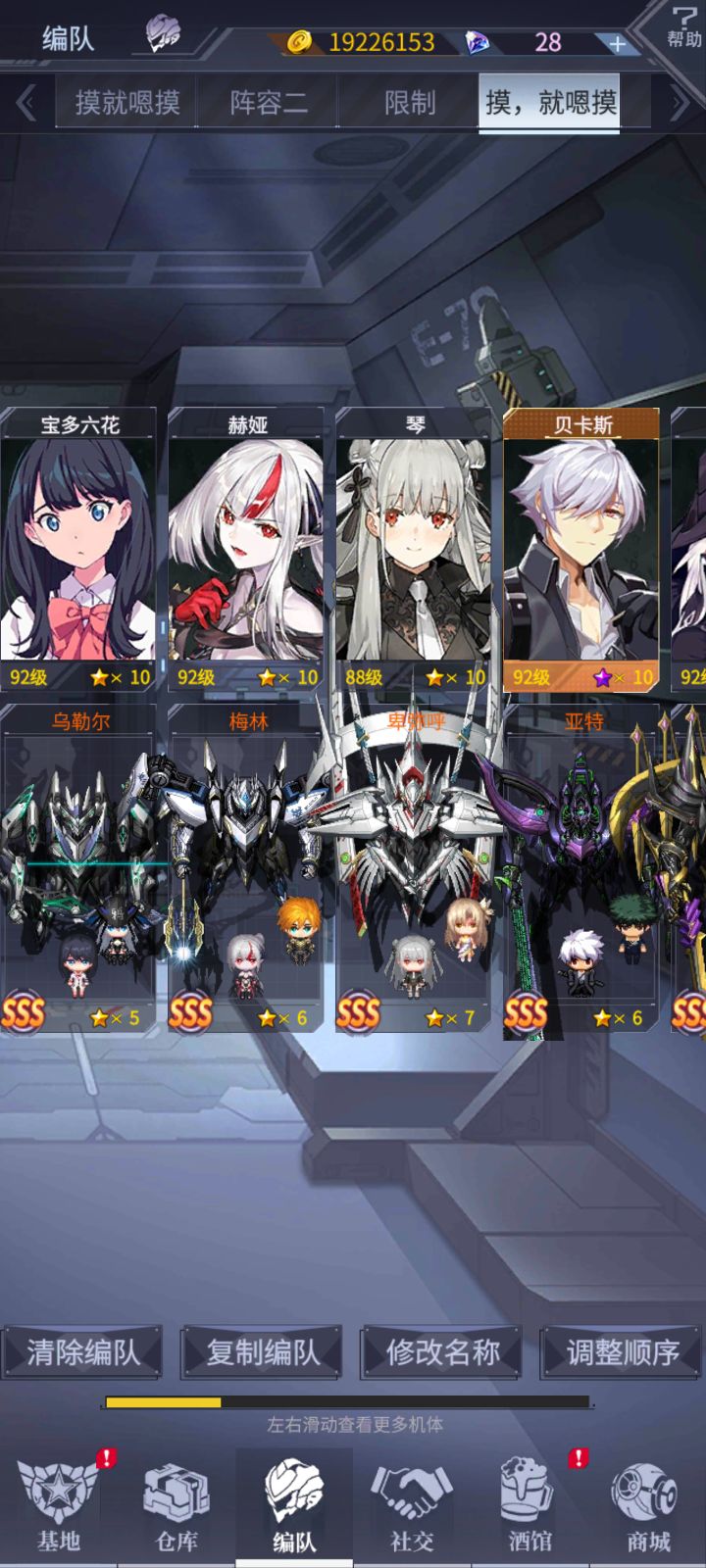 大佬们新人刚回坑,能帮忙配下队伍吗,现在主要就是过图,看下怎么配机师和机体。炮瓦9星,常胜8星,后面准备只搞黑盖塔,黑盖能满星,真盖和真盖塔龙体力不够抽奖一个没有,后面准备看看10连券能不能出。