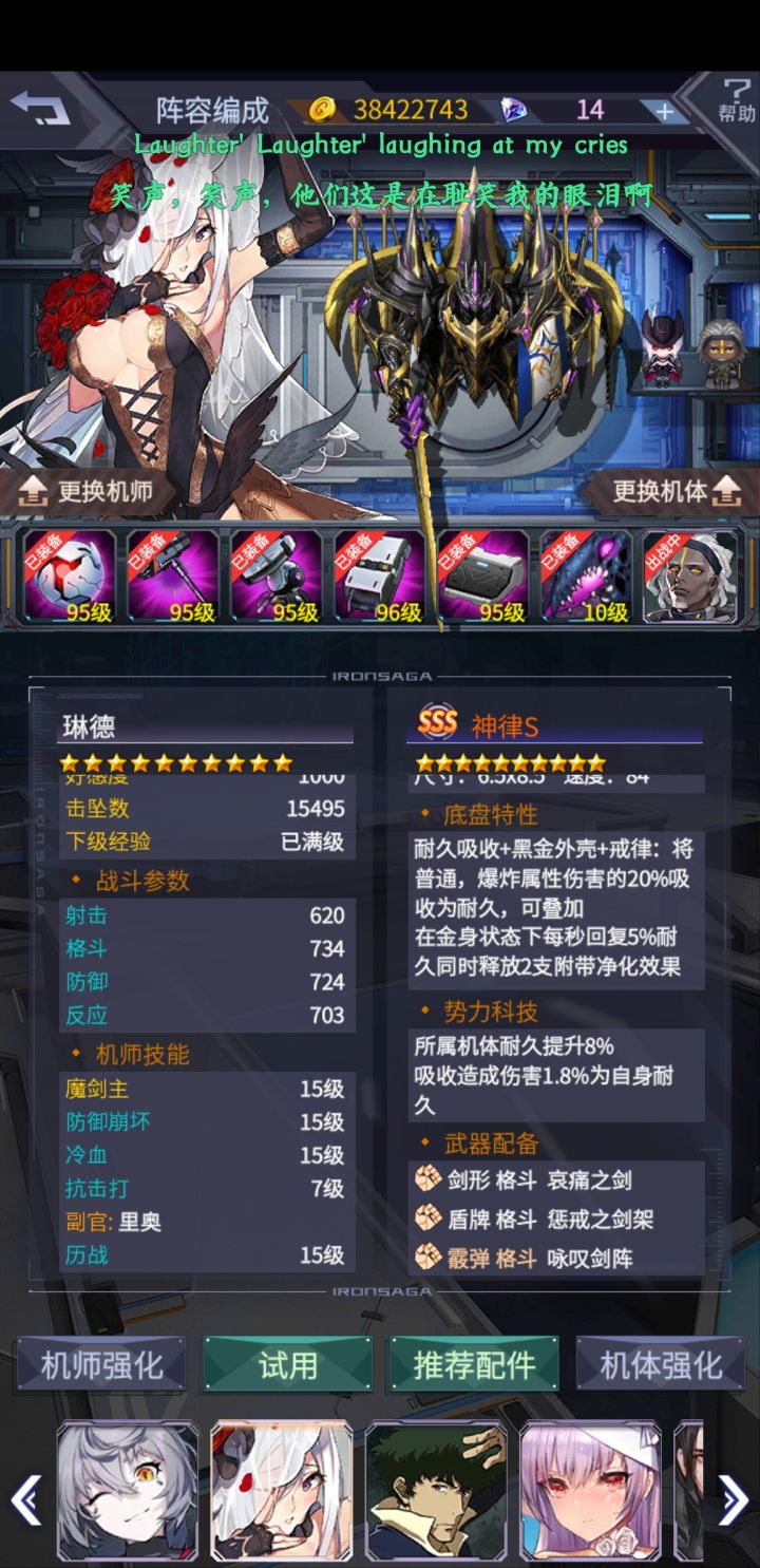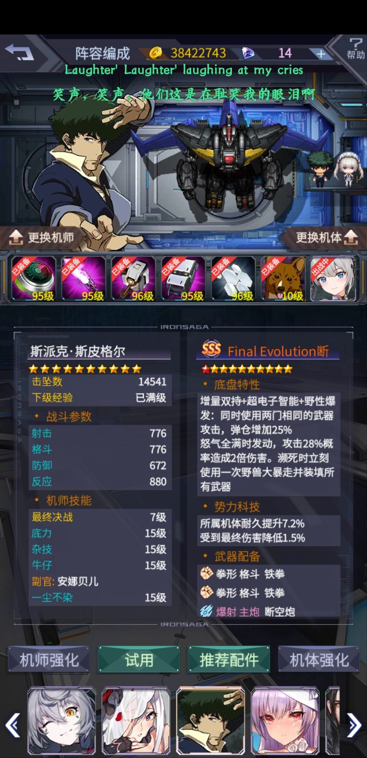 大佬们帮忙看看调整,现在每次打守密就差7%左右很尴尬,配件只有一个破锤,有弹仓破坏,劫掠,没有分析,然后中途那些机师适合放技能?