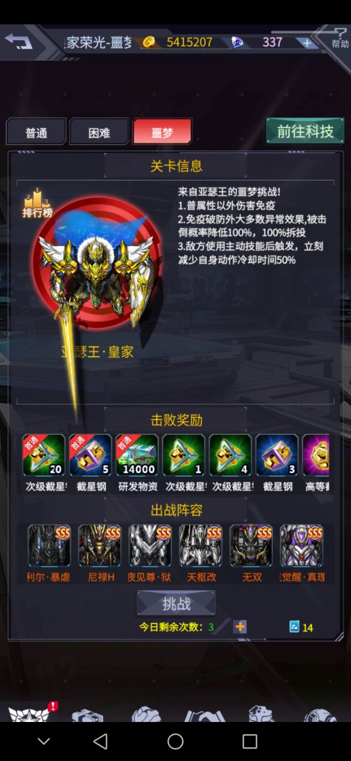 兄弟们我还差台白虎就可以9星了今天遇到了研究该不该研究啊主要是50个合金舍不得而且白虎好像不怎么地在犹豫要不要搞9星