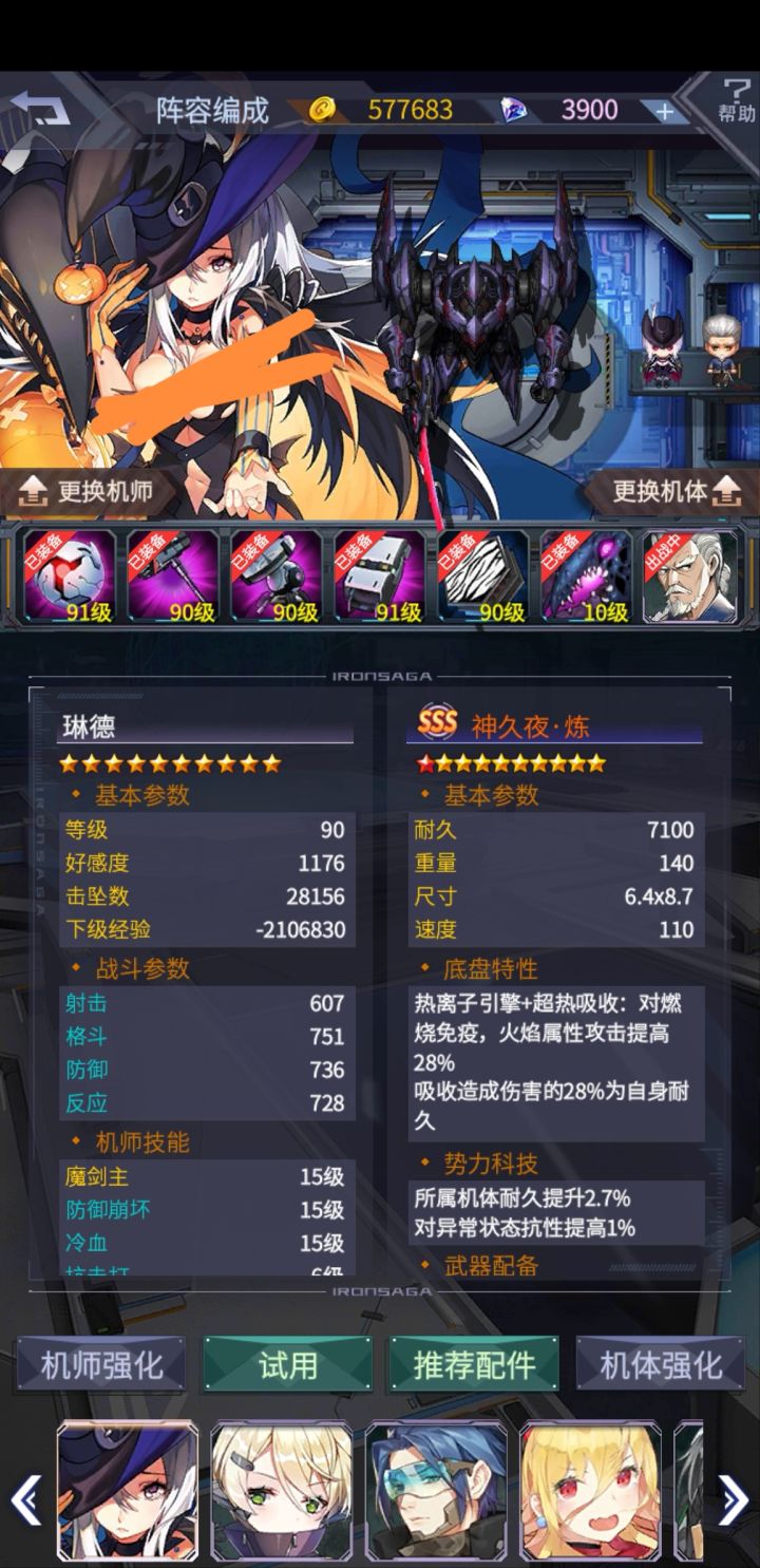 萌新抄作业的佣兵队,神久夜t不住😂打布伦希维尔和黑龙都暴毙,而且输出c总觉得差了点意思是配件不对吗(没啥机子),求大佬指教。后面附上阵容和我有的近战机----琳德和雷泽顿万圣节皮肤竟然被屏蔽了。。。先试试大佬们说的真盖塔和布伦希维尔重改当t试试,