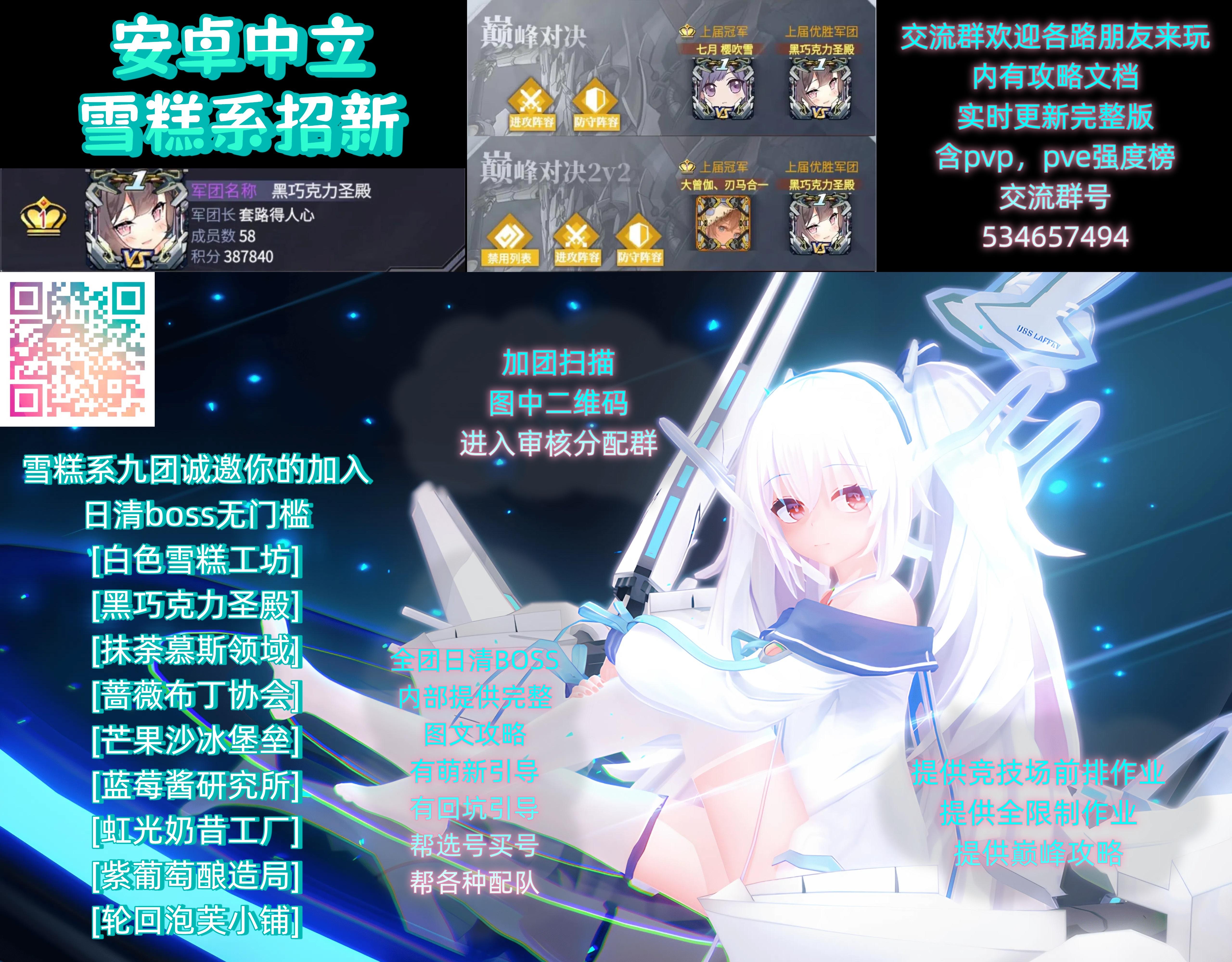 全团日清boss,扫码即可进群分配,群内提供完整图文攻略,实时更新强度榜,提供萌新引导,买号选号,帮助配队等服务。不加团也可加入吹水群,群号534657494,欢迎各位朋友加入!