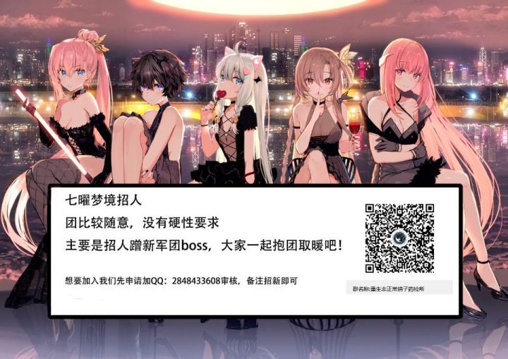 军团招人百里风泊烟淼大量招人,来者不拒,自动审核旧BOSS日清,研究全开不管萌新还是老咸鱼全都要能点点新BOSS就点点,不想打也可以,没要求