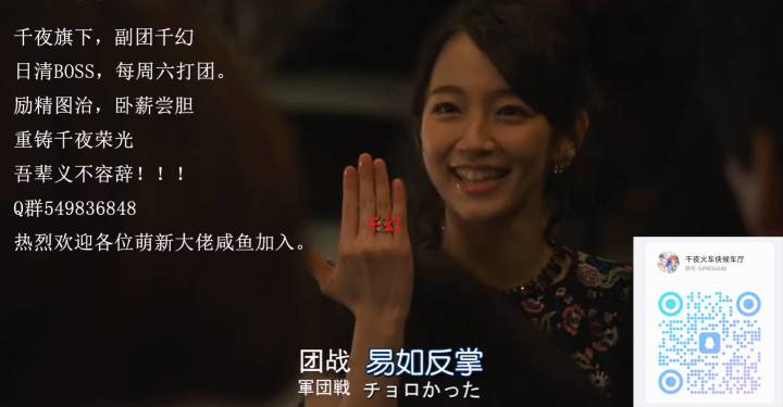 千夜旗下,副团千幻,日清boss,每周六打团。励精图治,卧薪尝胆,重铸千夜荣光,义不容辞!!!Q群549836848,热烈欢迎各位萌新大佬咸鱼加入。