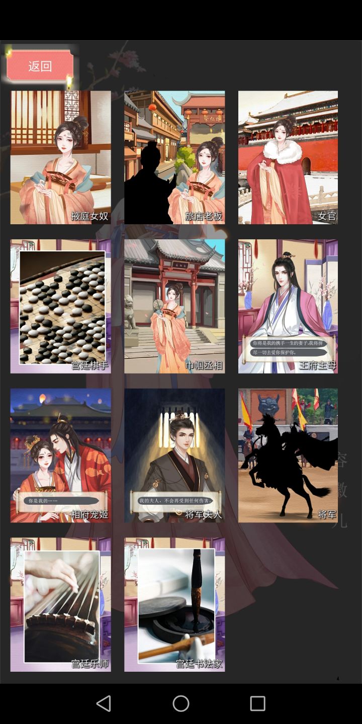 目前一共应该有13个结局,我刷不出士兵和归影山林ε=(´o`)一切的前提都是智商前两年要到130,如果继续宫女那就是智商不到90然后恋爱一个劲的先堆个人好感,桃月一定选符合个人喜好的刷下去,将军是棋,丞相是舞蹈,王爷是文举好感达到95-105才有可能触发求婚然后各种对应属性,都是需要魅力120和礼仪130?将军的话是魅力120棋130?不太记得了最后如果想要宫廷官员的话就一直刷诗书(书法)/武术