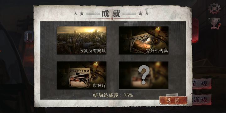 太简单希望加大难度,刚下没多久就通了,只解锁2个结局,剩下两个一个大墓地结局,一个机场结局。只要肝就好了。最高难度不行啊,进游戏就是最高难度。然后2个存档,上面的是肝新结局,下面的就是通关。