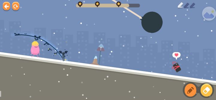 画一小段打开关出门,然后火箭旁搭桥不行就先在边上随便画一小段,等雪球落下再搭桥