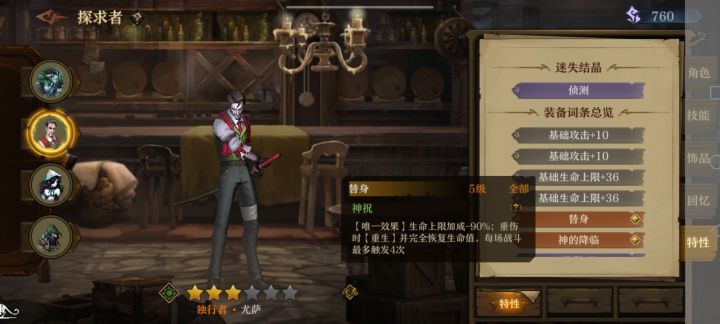 我给尤萨买了个神的降临的武器,此时一切正常,然后我怕尤萨猝死又买了个替身,结果发现升级时倒扣生命上限了,两个装备全部换下来生命上限也只有77