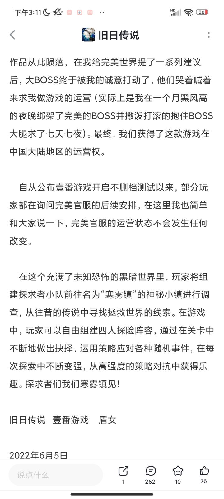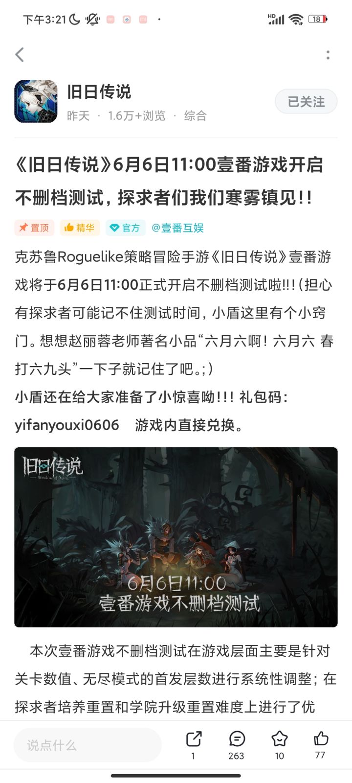 《旧日传说》6月6日11:00壹番游戏开启不删档测试,探求者们我们寒雾镇见!! - TapTaphttps://www.taptap.com/topic/20891346?share_id=fc0a30398de2&utm_medium=share&utm_source=copylink