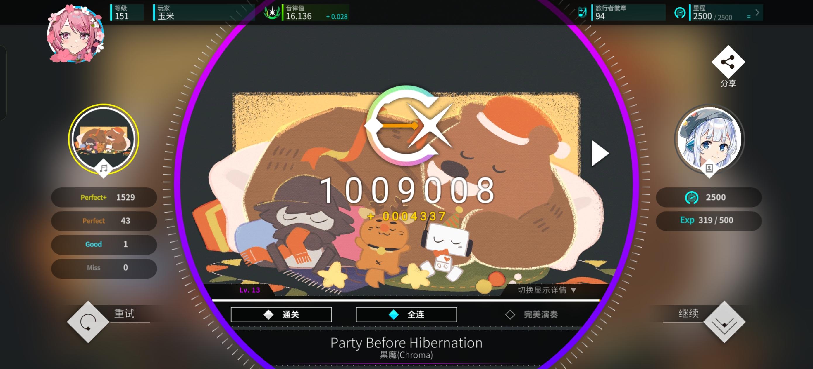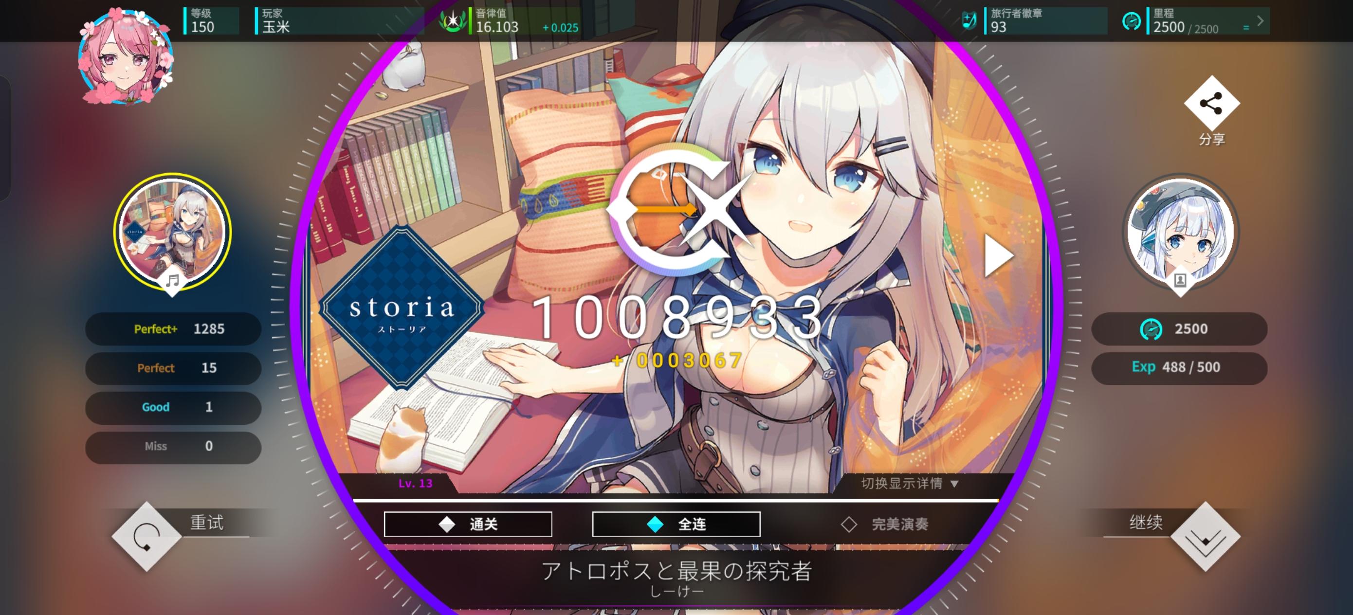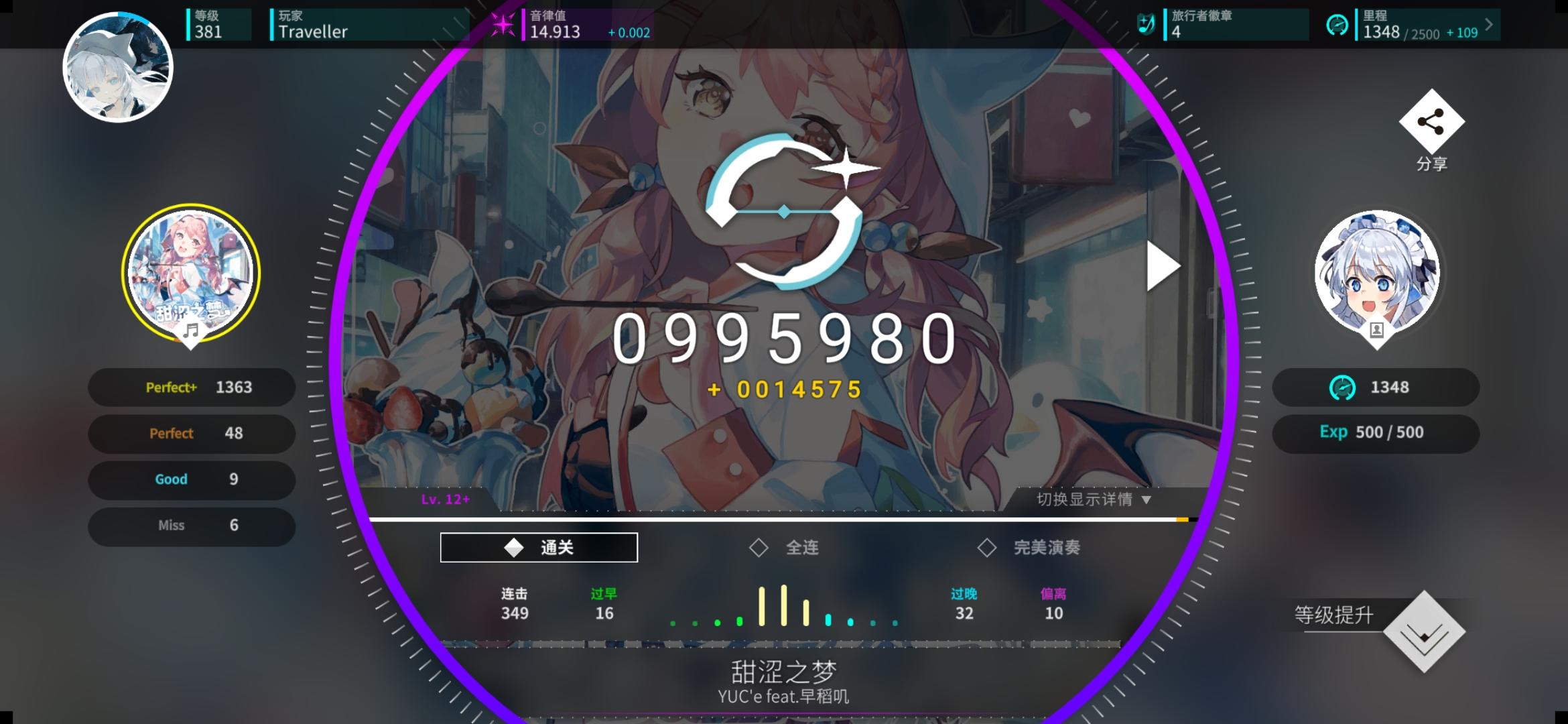 就打了两把直接刷高了将近两万分,曲子也很不错,开心!(虽然感觉难度可能就是13+吧)