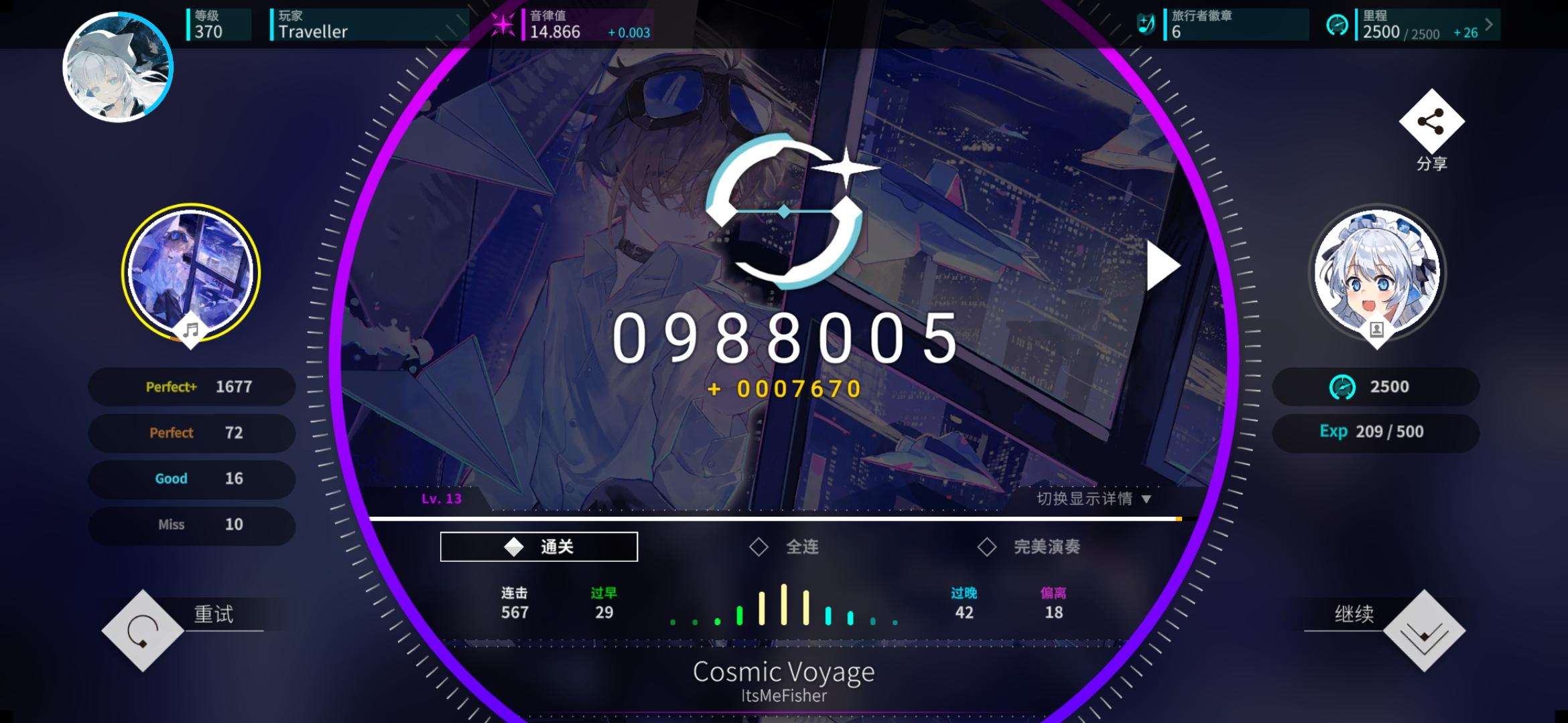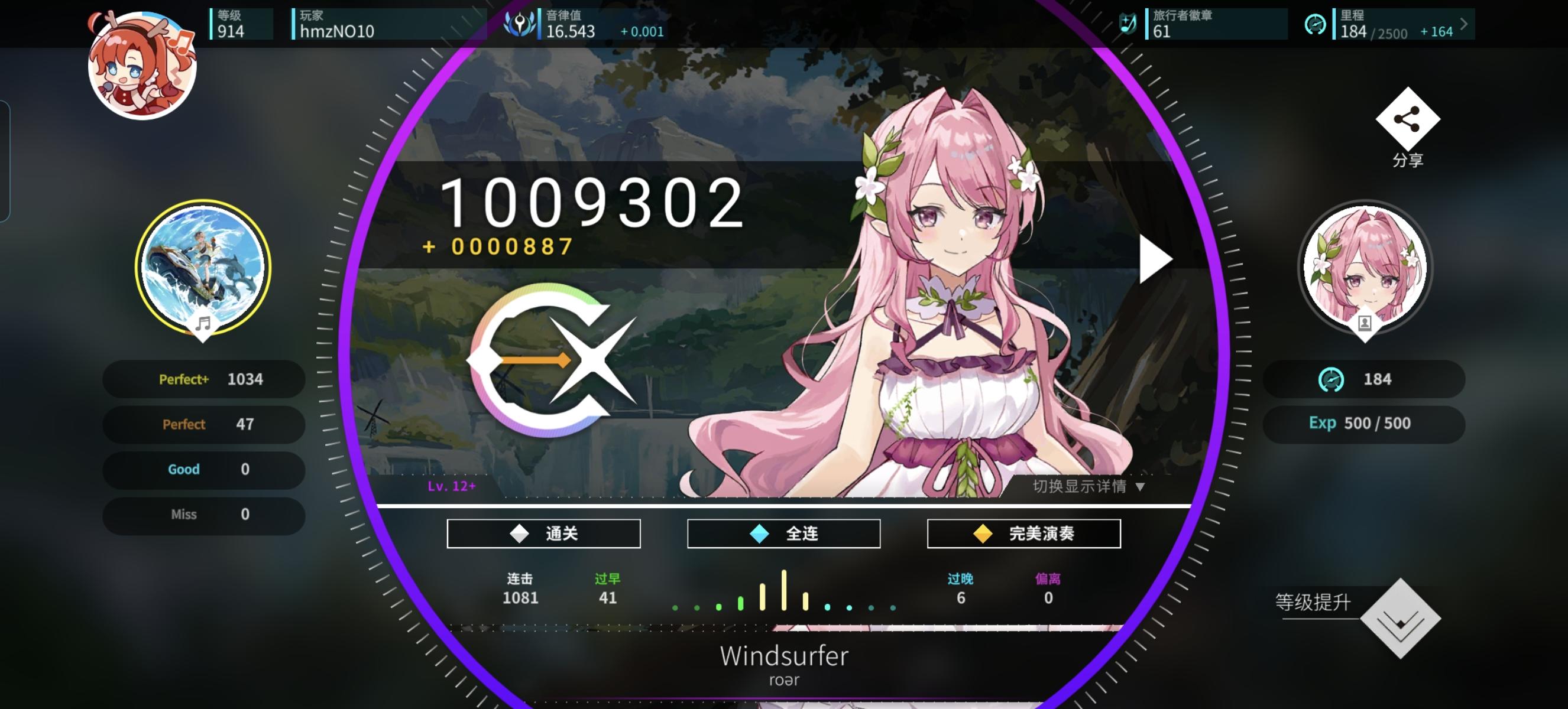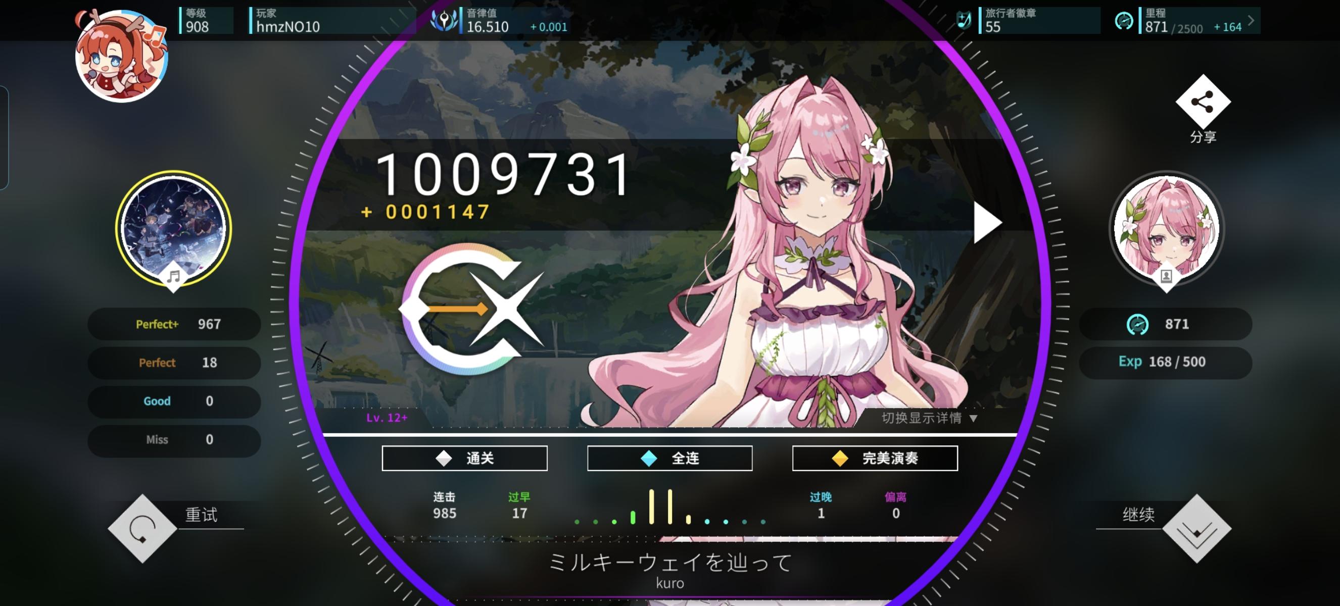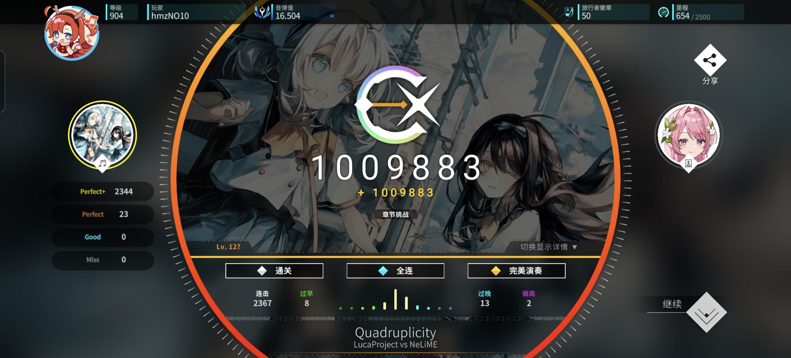 感觉今天特别适合打新时代的曲子,和伊洛、荷珀、莫娜一起过新年!另外今天状态感觉爆棚了,一口气连续AP了好多曲子,甚至还AP了第一个alpha难度曲子,上了0.056分,冲上了16.5,美美收官!