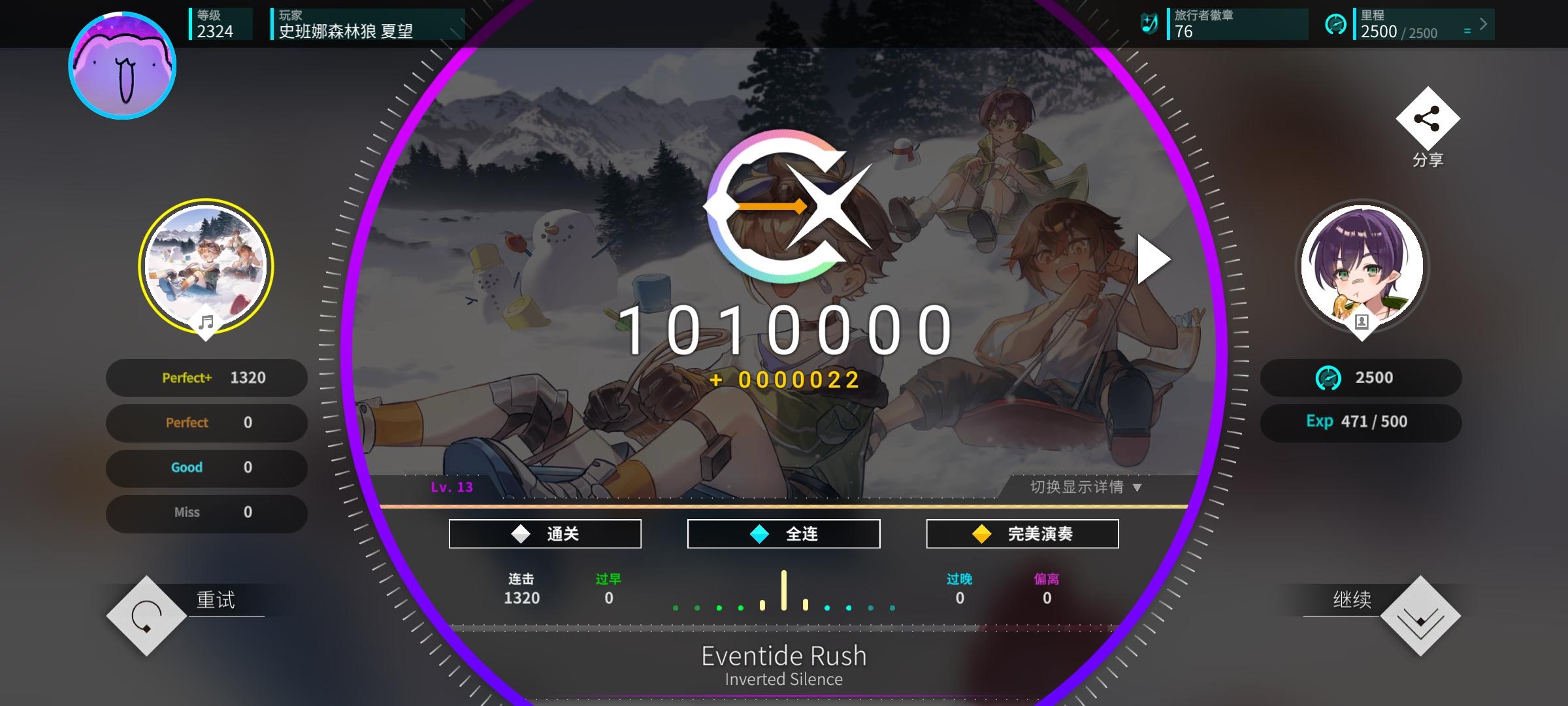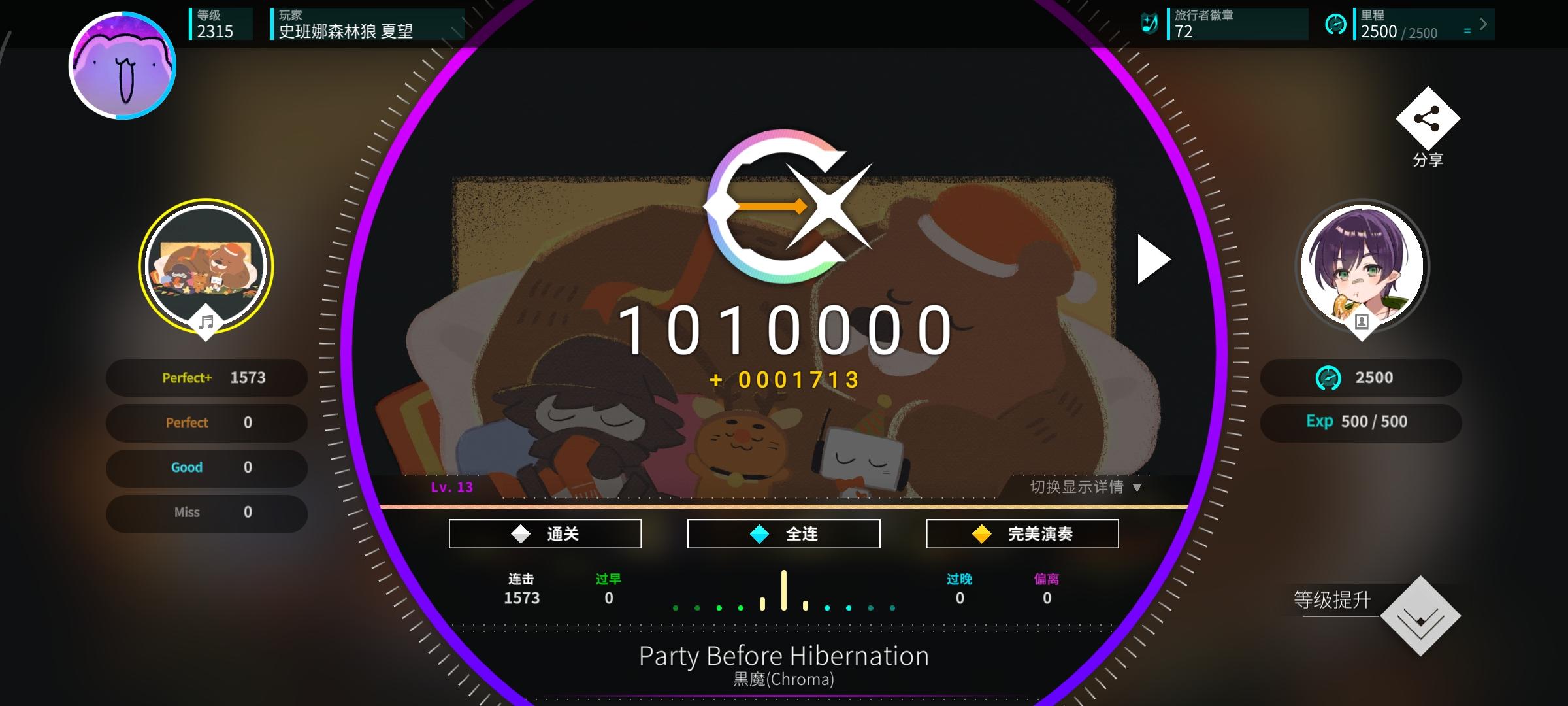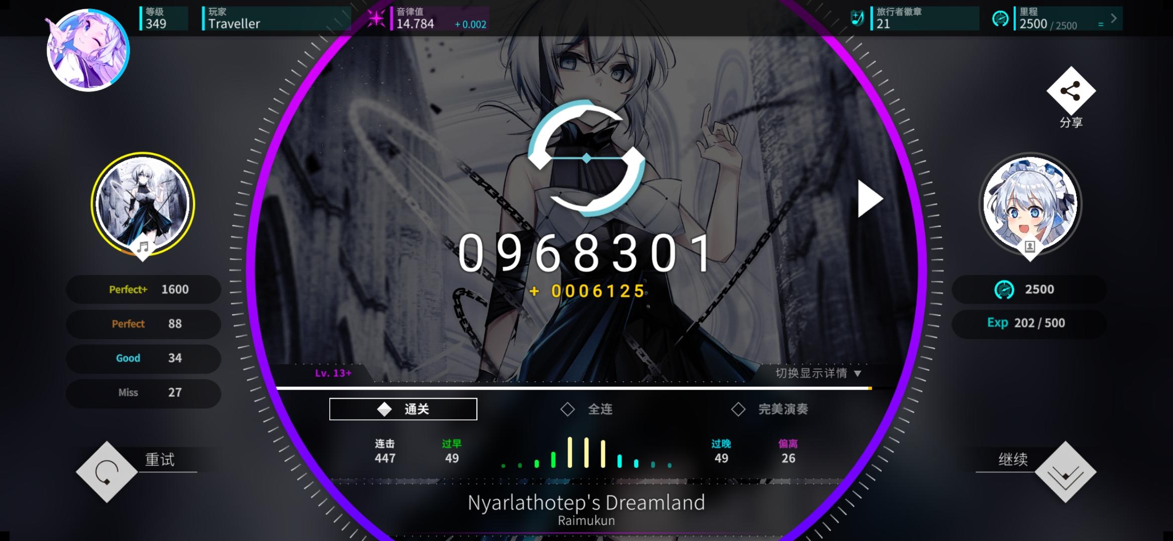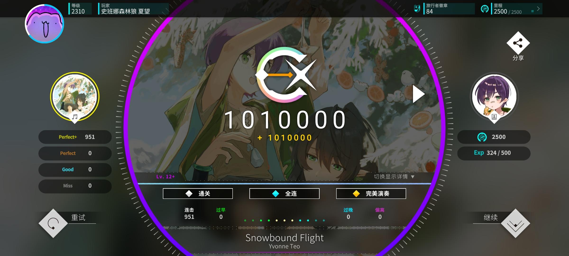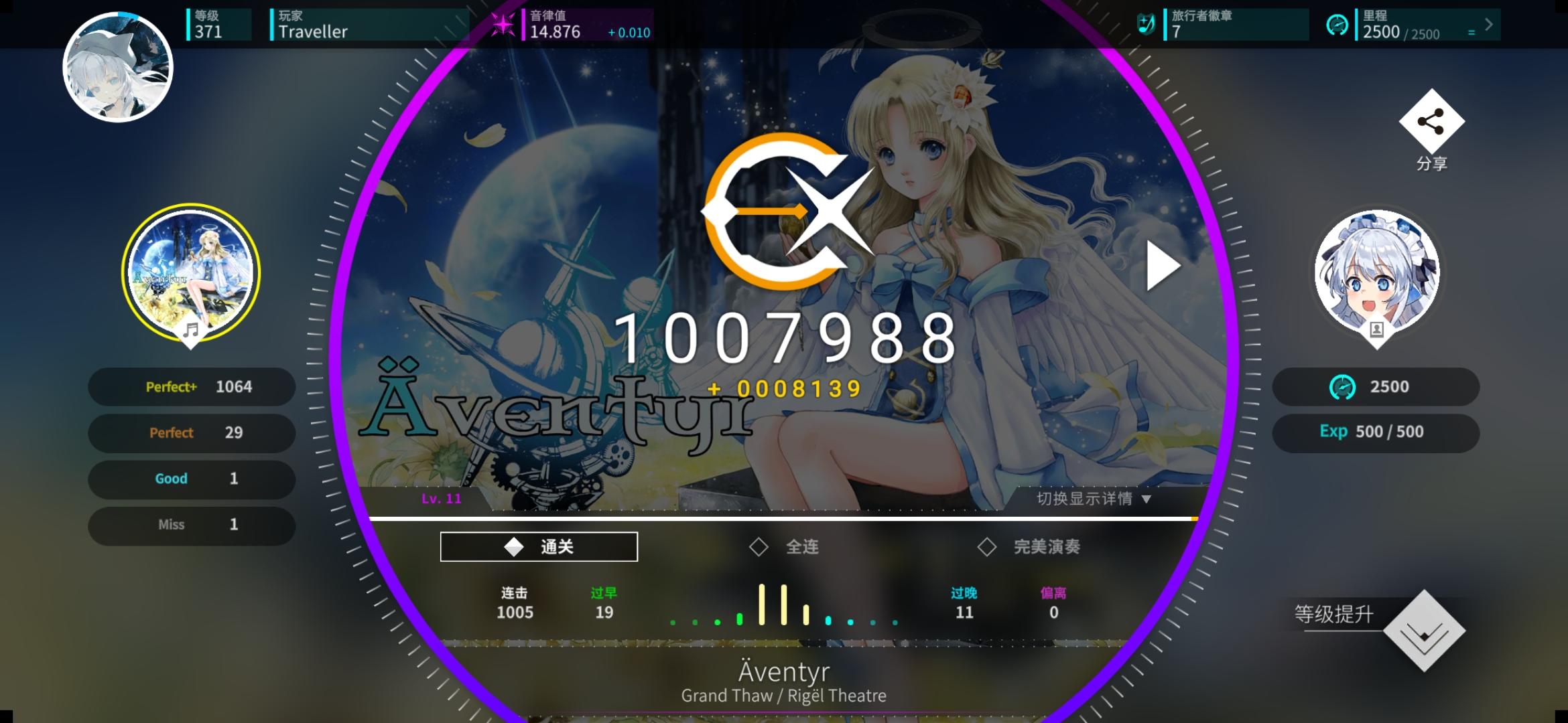 感觉今天特别适合打新时代的曲子,和伊洛、荷珀、莫娜一起过新年!另外今天状态感觉爆棚了,一口气连续AP了好多曲子,甚至还AP了第一个alpha难度曲子,上了0.056分,冲上了16.5,美美收官!