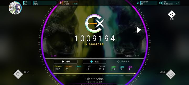我服了。。为什么。。。。最后一个miss了谁懂啊。。www我亲爱的室友们,如果你们听到我会莫名其妙突然大骂几句,不要害怕,不要惊慌,很可能是我差点fc了,拥有了1个小姐😇