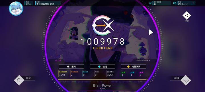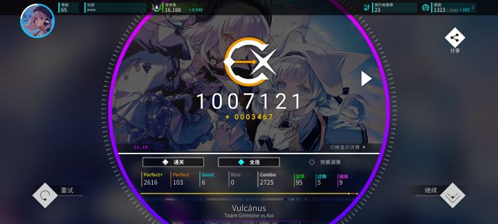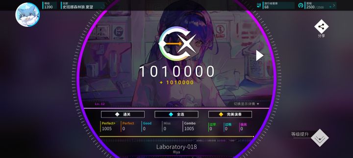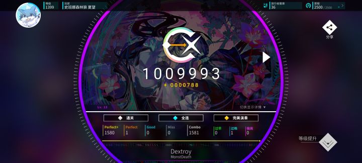 达成于2025/3/20 22:50:12 不是,本来还在想12和12+首ap哪个先来的(曲子都选好了),结果直接ap了个13+??? 在这之前ap的最高难度还是11+的应许之地和huggy wuggy…… 果然是因为玩的时间不长,动作看着还是很狼狈,甚至在前一半都不能保证手机完全在画面内[表情_捂脸哭]如果影响观感的话真的很抱歉😭 主播把音符样式换回了圆形,感觉还是圆形好读一些(玩maimai导