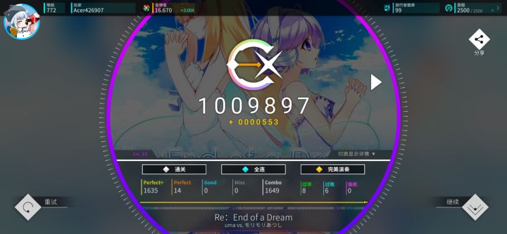 已经快摸到16的门槛了!但还是在爱丽丝唯一交互段没撑住你游总有一些歌会给我能收的错觉,结果打好多遍都差一点