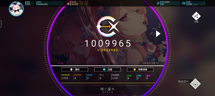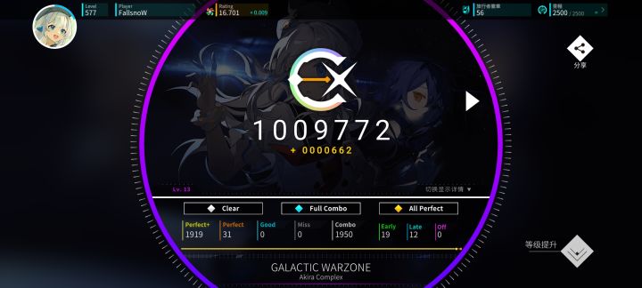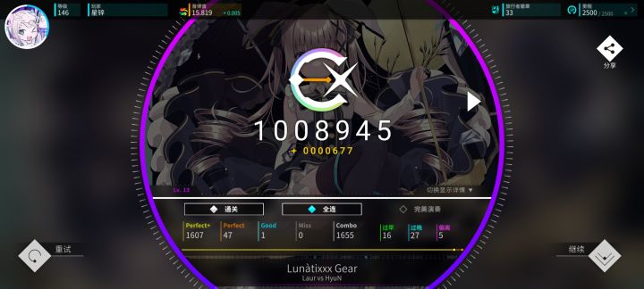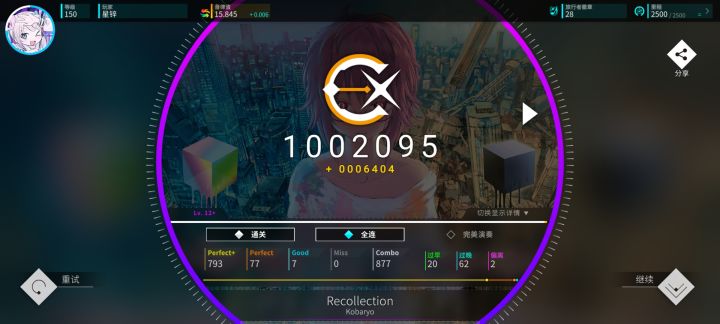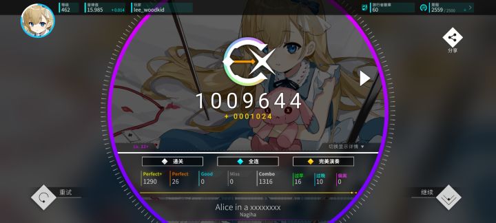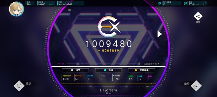 #rotaeno 听说rotaeno要30号要改rating计算了,疑似没有r10了,于是打算在更新前推上16,先鞭了my story十遍填满r10,然后连收三首12+。然后今天中午吃完饭随手开了一把daydream居然收了,刚好点不差摸到16线