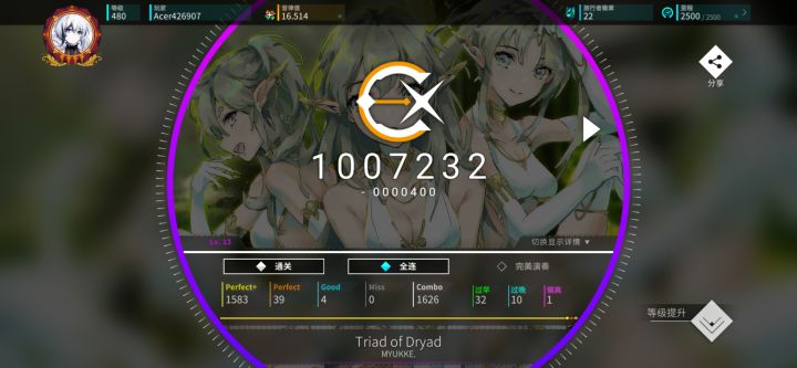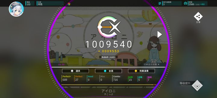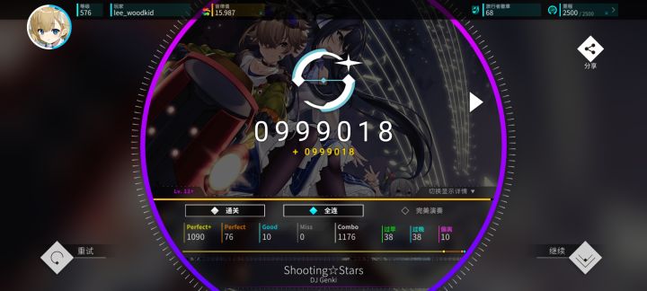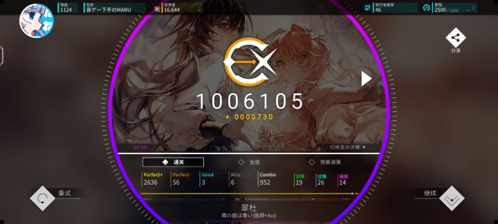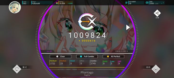 定数12.8,初见FC,但是准度爆炸。可惜开局发呆了一下双滑键爆g了,不然就能鸟了。