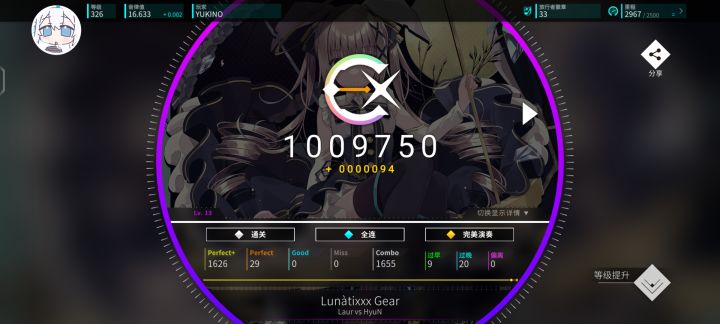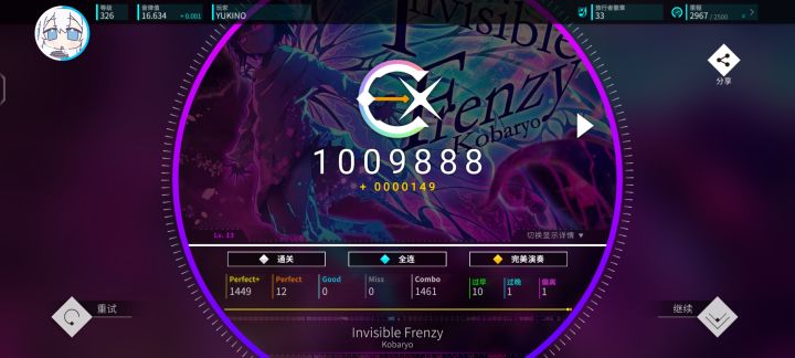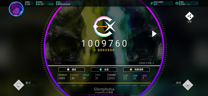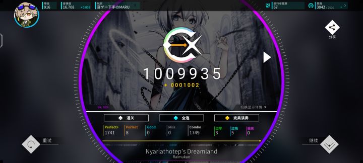 Nyarlathotep's Dreamland IV Lv.12+? AP!!看着难打着更难,最后散点紧张了跨跨掉然后全曲真AP达成!之前是缺了奈亚之梦,现在补上了!接下来该努力一下深渊10血了,虽然我觉得现在有些悬。。。