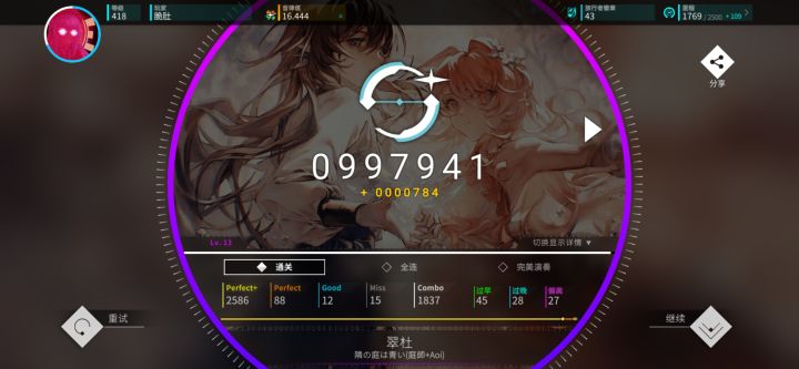 Quon的癖总算解了,也庆祝第一个曲包全ap(下一个是phi吧应该)