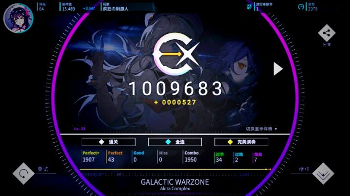 奈亚子3见AP,4见6小,全曲4难度拿下!