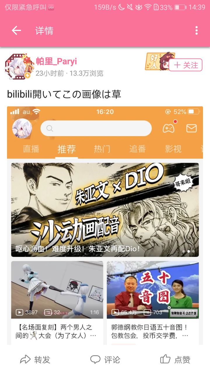 (翻译:一打开B站就看到这个,太草了)(看过v的应该很容易理解吧)