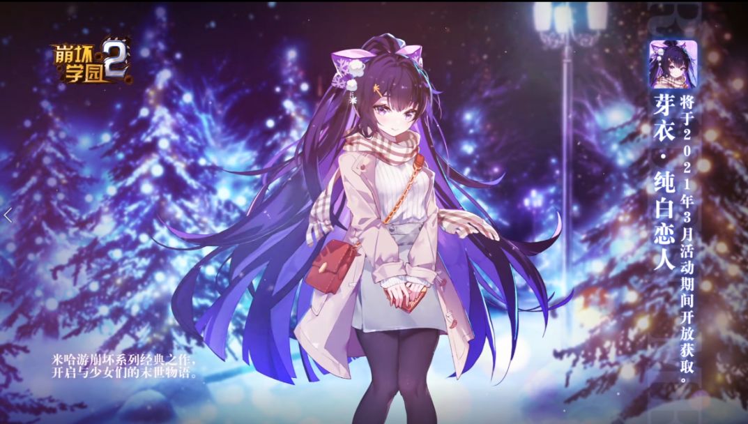 总是心有灵犀,总是一起回家。谈天的时候总是聊到一块,去电影院的时候总是选中同一部影片。——“她会喜欢我吗?”全新动态看板「芽衣·纯白恋人」即将上线,来谱写与她的白色恋歌。