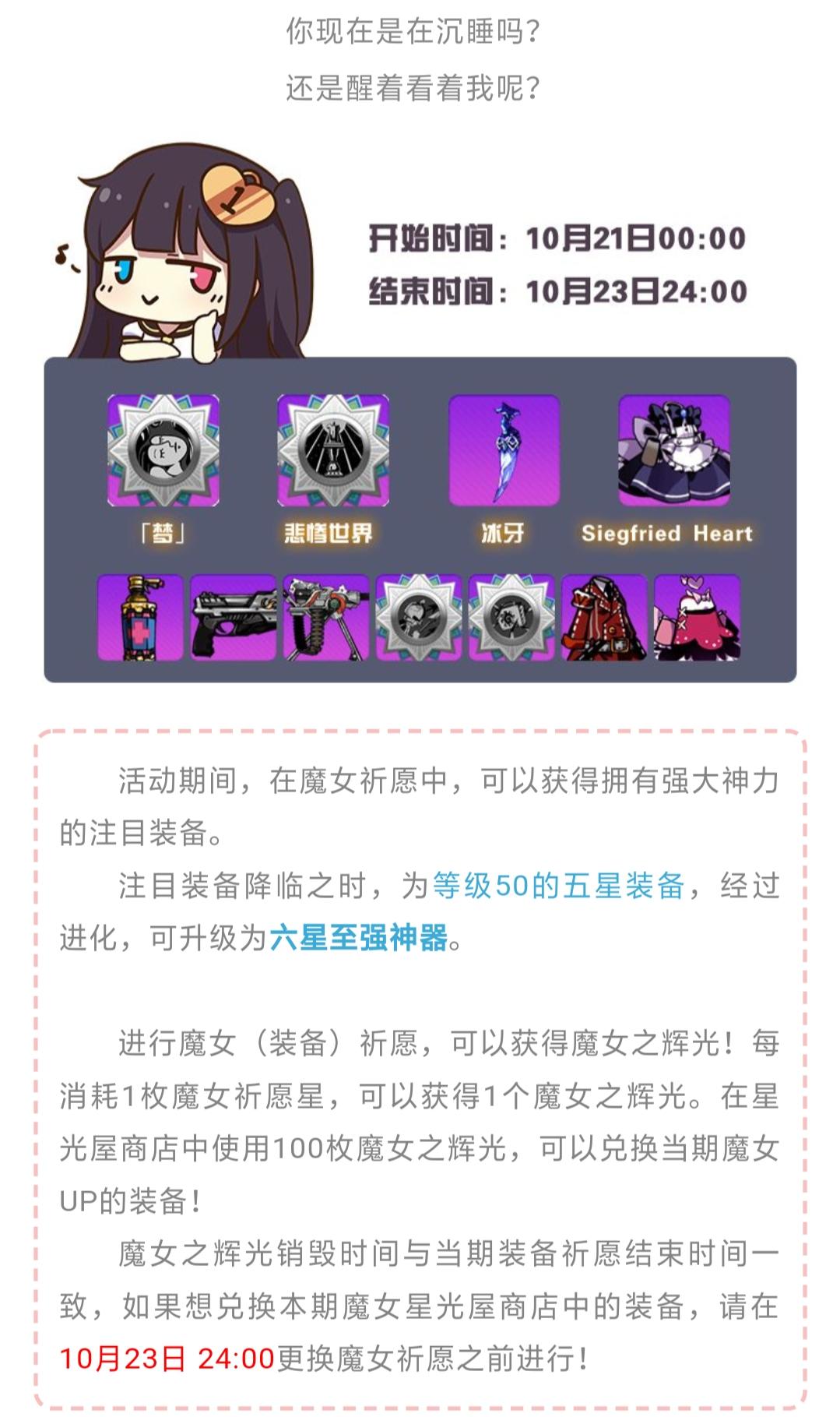 使魔大陆新一轮使魔竞技开启啦!本小姐会为大家加油鼓气(<ゝω·)☆((●≧艸≦)プププッ使魔小可爱们也要在比赛里努力发挥哦~使魔竞技场 限时开放!【活动时间】10月8日00:00~10月21日24:00【活动规则】使魔竞技场分为【冒险模式】和【排行模式】,小伙伴在进行作战之前,要注意自己选择的模式哟~【活动商店】使魔印记可用于在活动商店中兑换使魔碎片和使魔喂养素材等商品哟~小伙伴